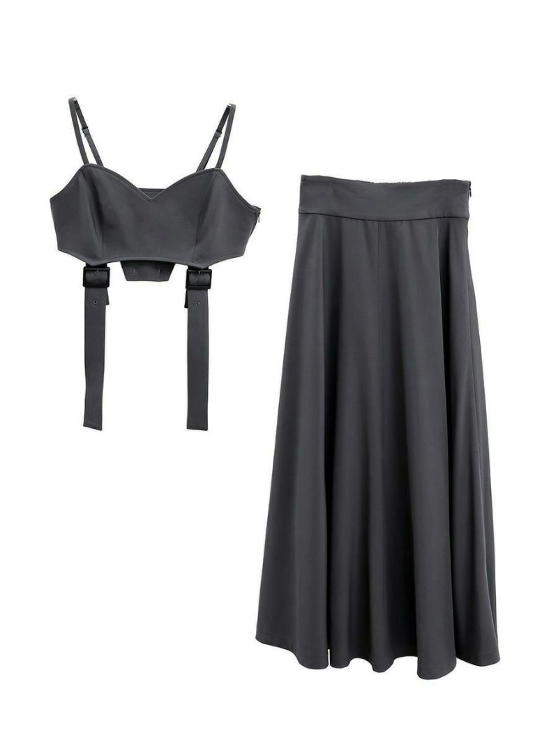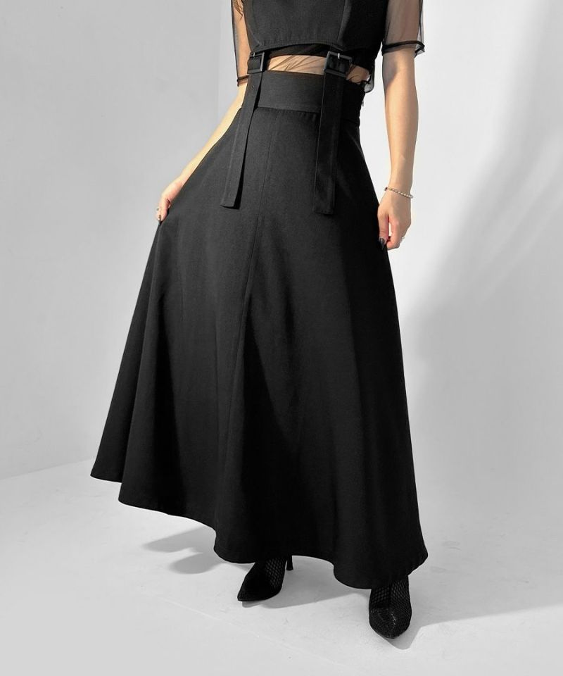 ビスチェとフレアスカートをベルトディテールで繋げた