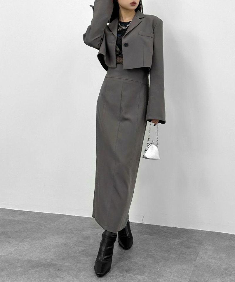 同素材のフレアカフスクロップドジャケット(商品番号:63921001)との