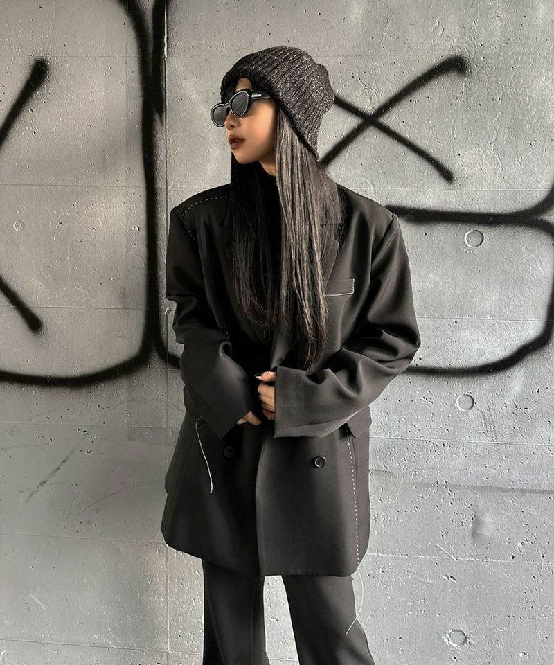 シンプルなシルエットに白ステッチで 個性を引き立たせたジャケット。 ステッチの大きさから糸の太さまで こだわり抜いたアイテムです。 メンズライクなオーバーサイズで マニッシュでありながら抜け感のある印象を与えてくれます。