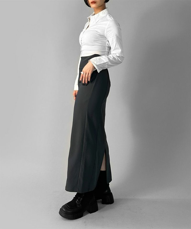 美しいシルエットのデザインタイトスカート。