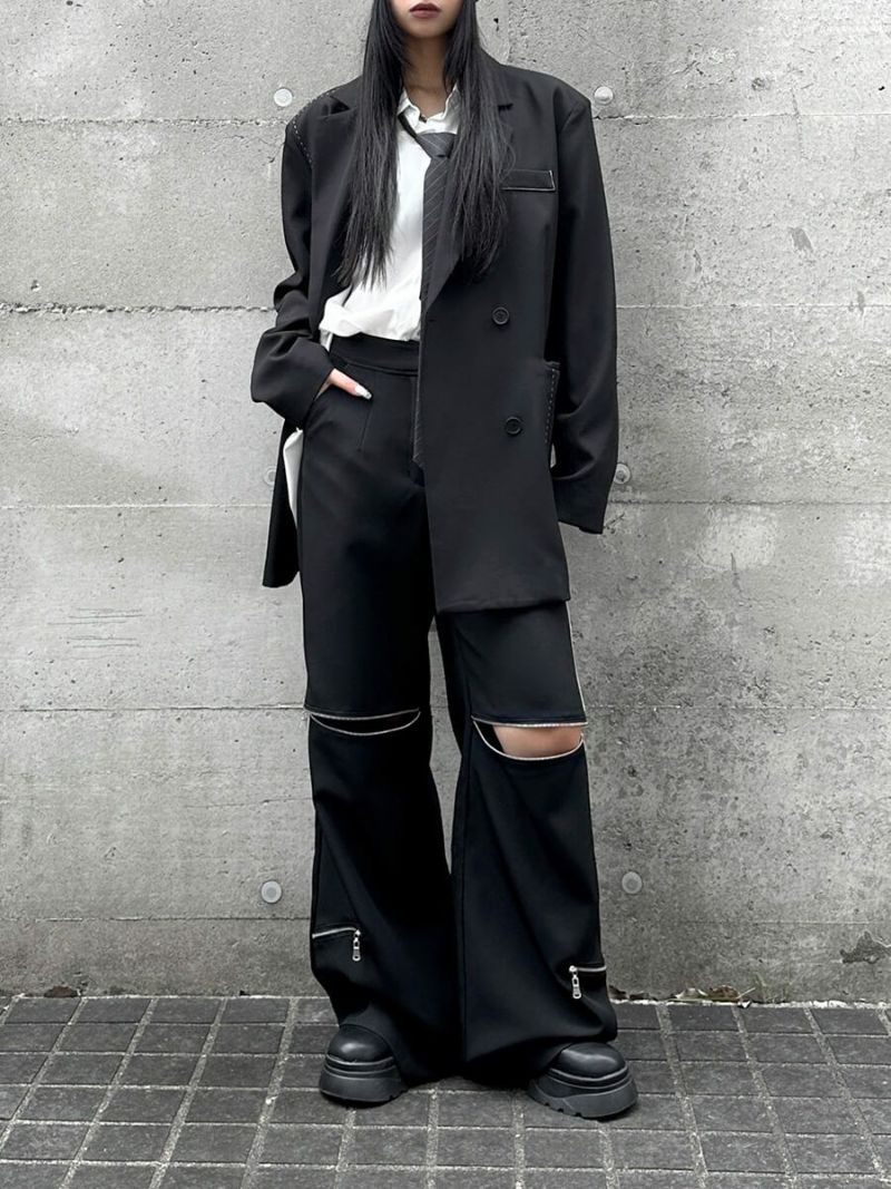 ジップデザインワイドパンツ