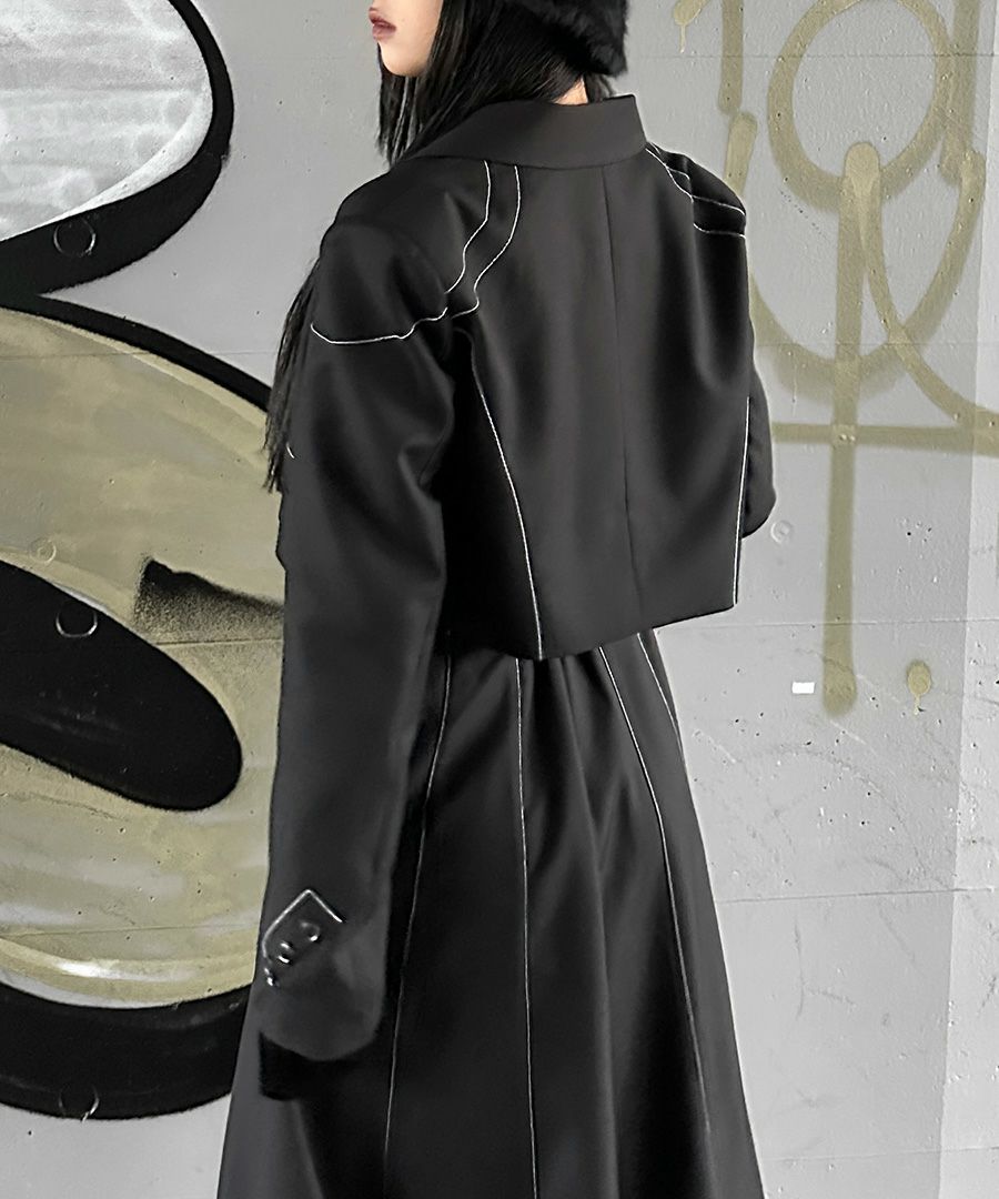 他の画像を見る 【50%OFF】 Stitched design cropped jacket ORIGINAL CLEARANCE SALE 定価 ¥ 7,920 → ¥ 3,900 税込 販売期間 2024/09/22 20:00 〜 カートに入れる お気に入りに登録する