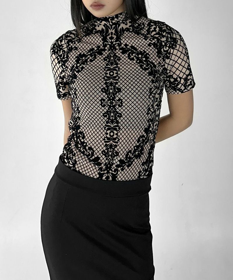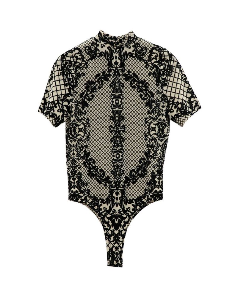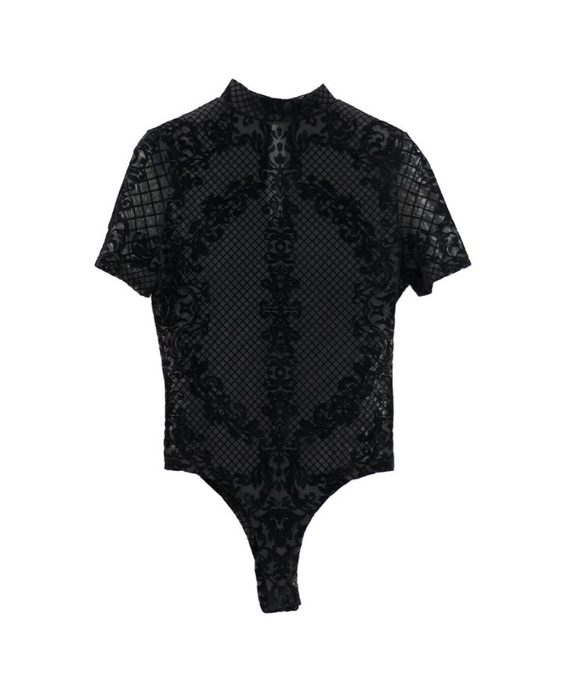 レースデザイン半袖ボディスーツ