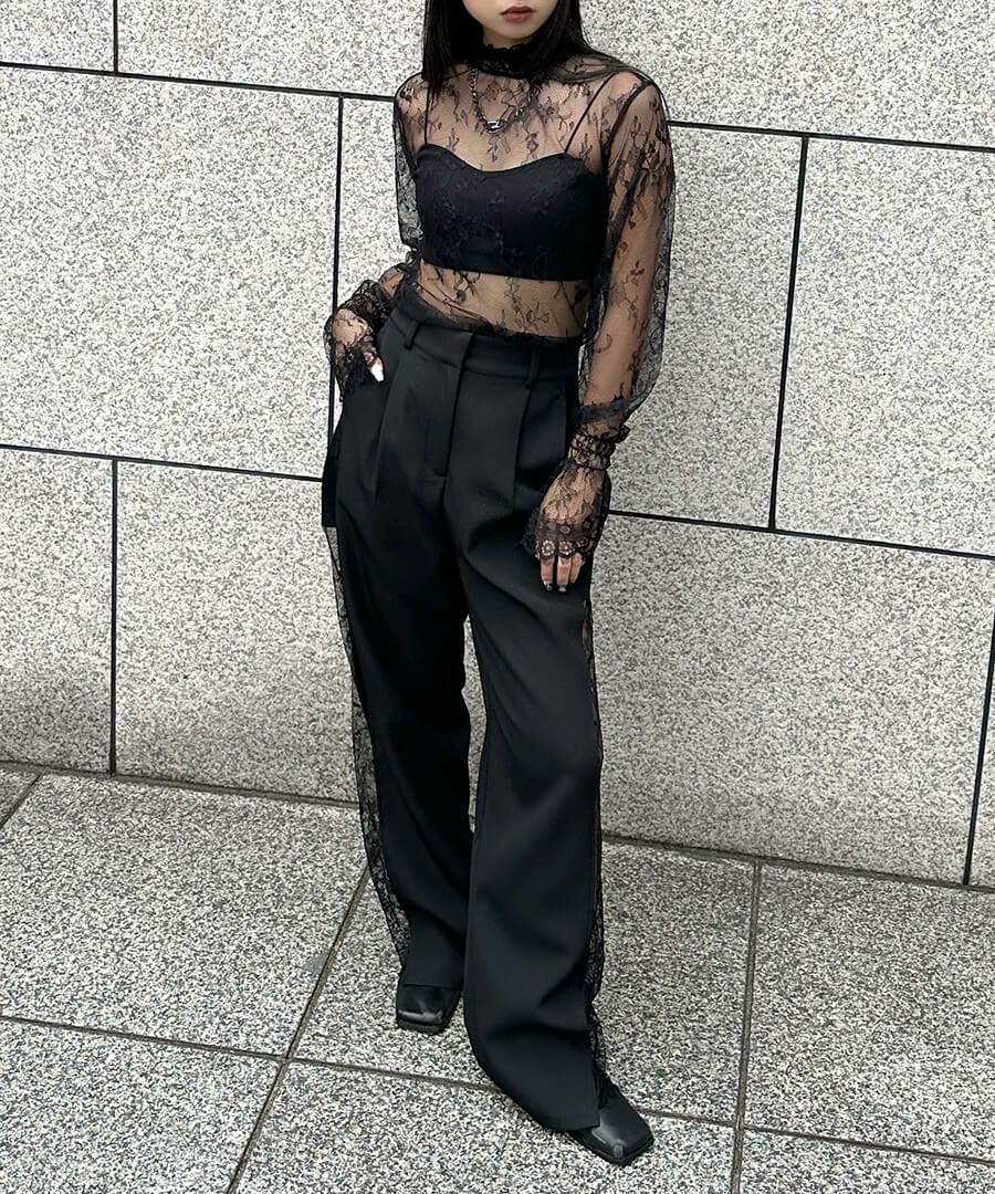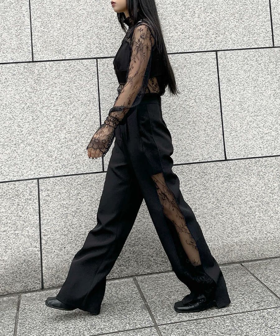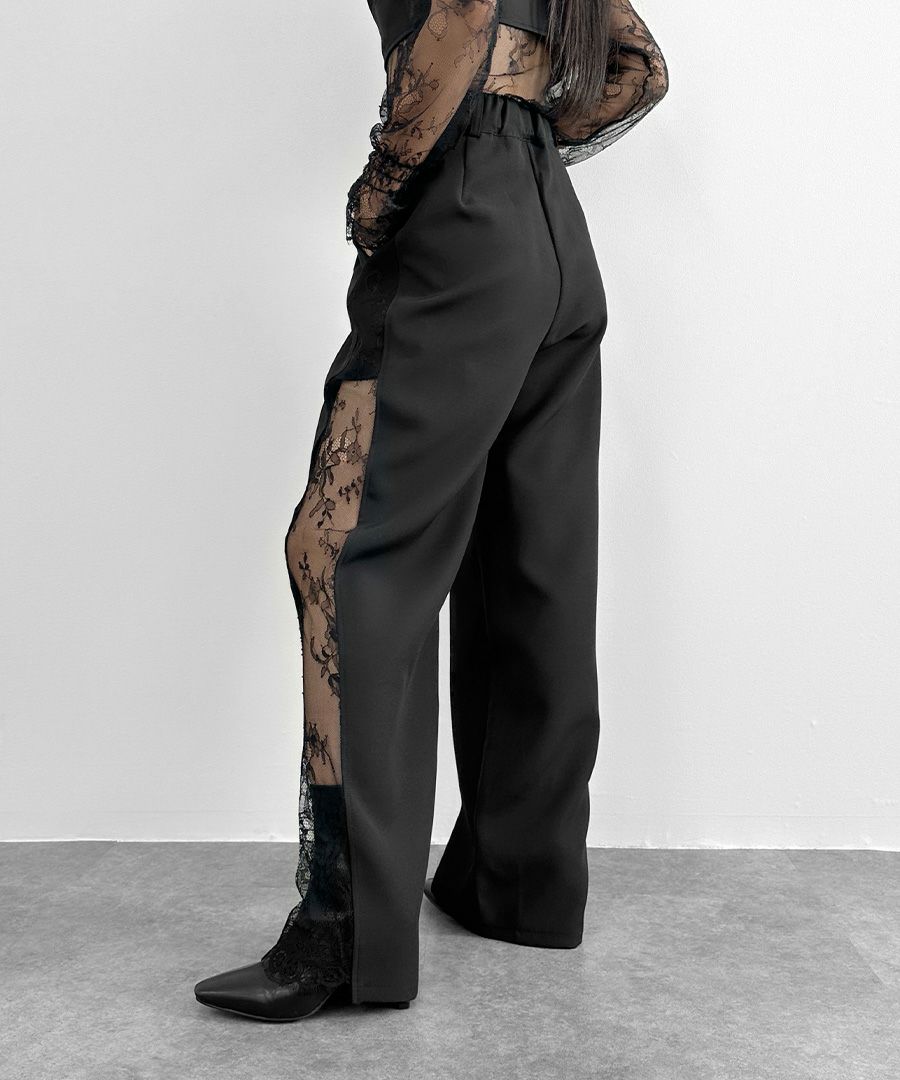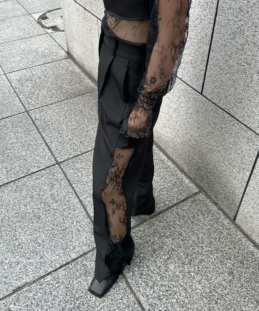 マニッシュなシルエットと華やかなレースをMIXしたスラックス。