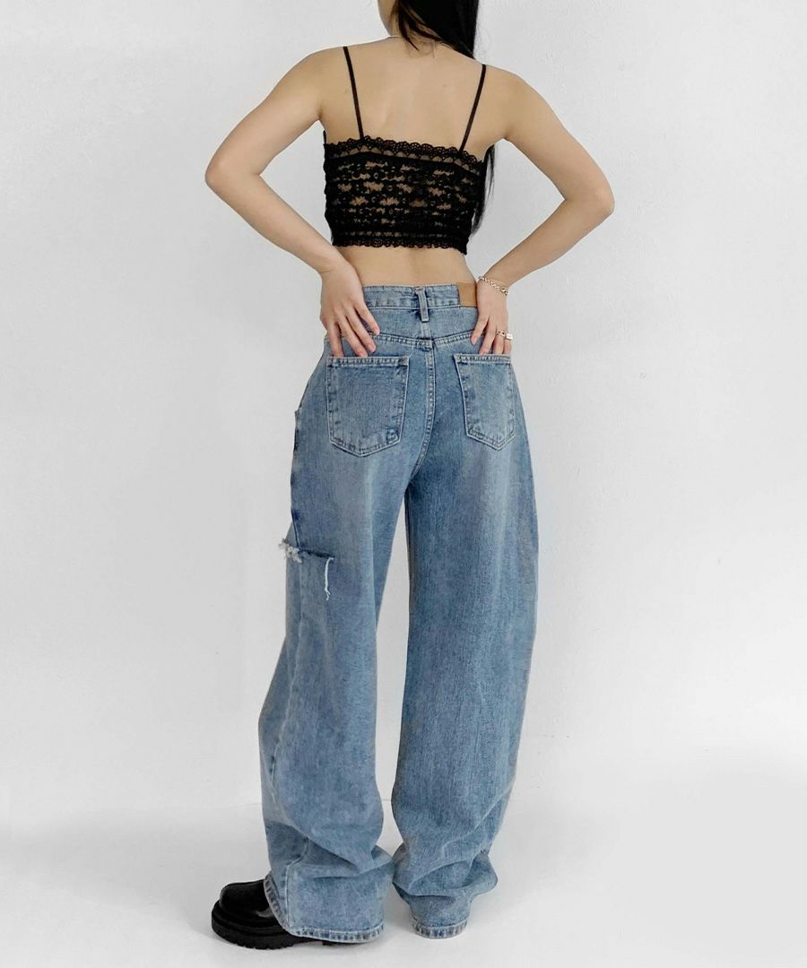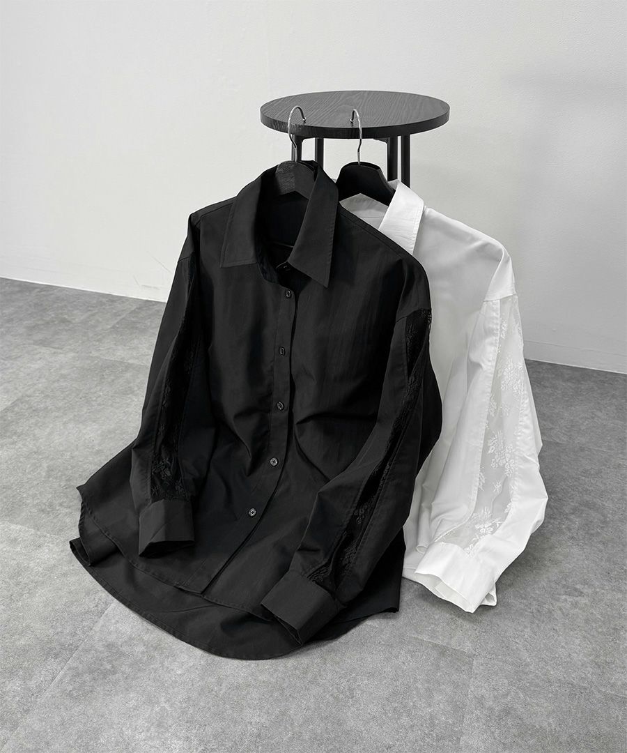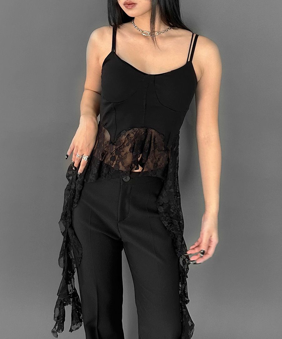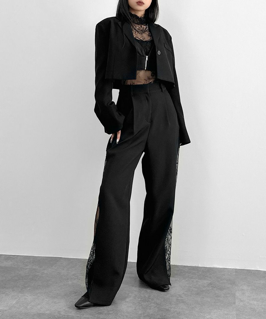 マニッシュなシルエットと華やかなレースをMIXしたスラックス。