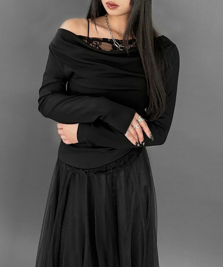 コケティッシュな雰囲気でモードゴシックな着こなしを楽しめます。