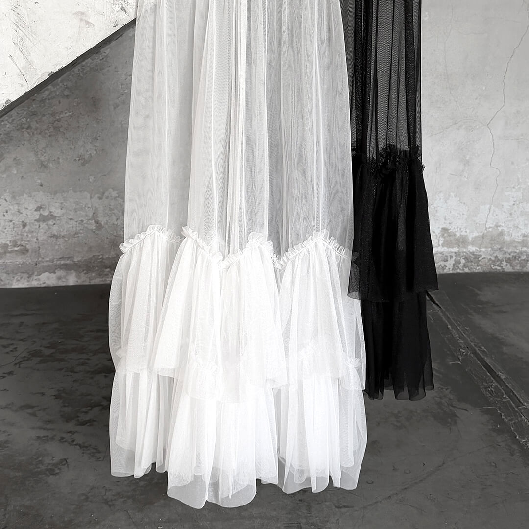 贅沢にチュール生地を使用したレイヤードが楽しめるワンピース。