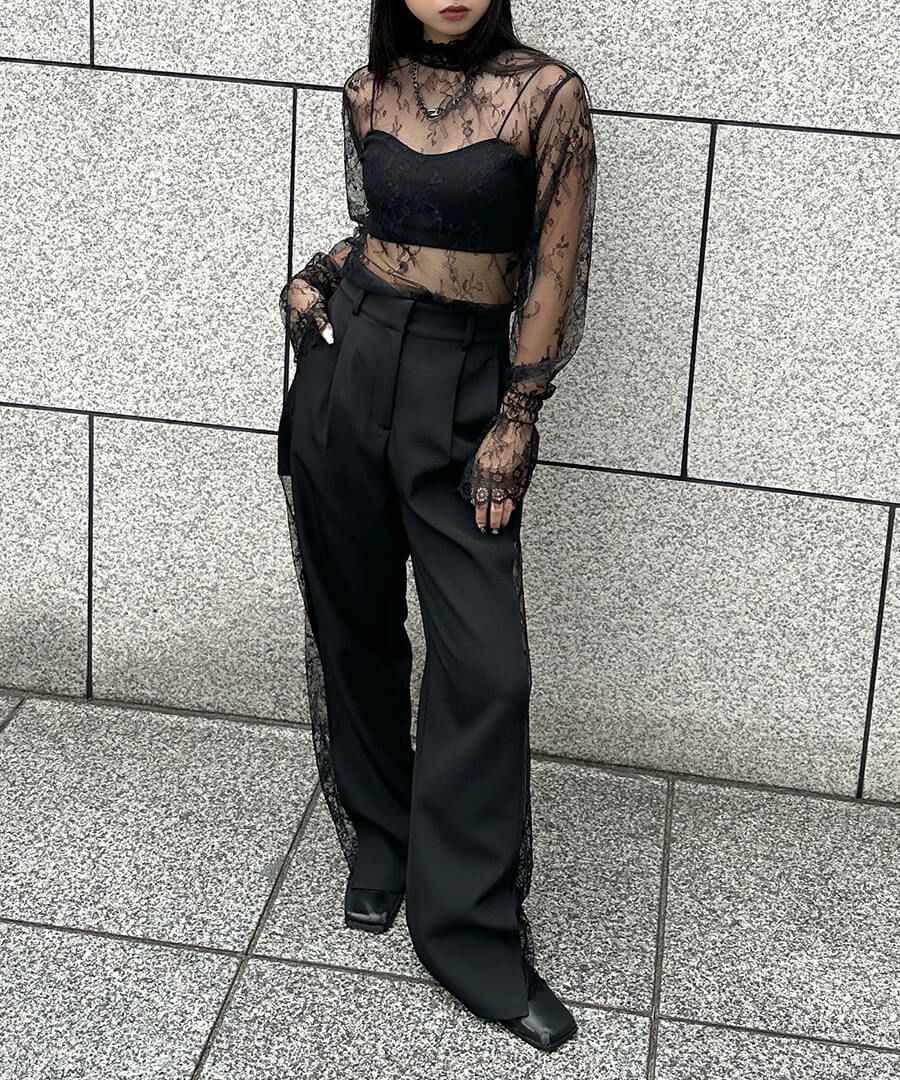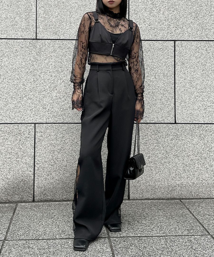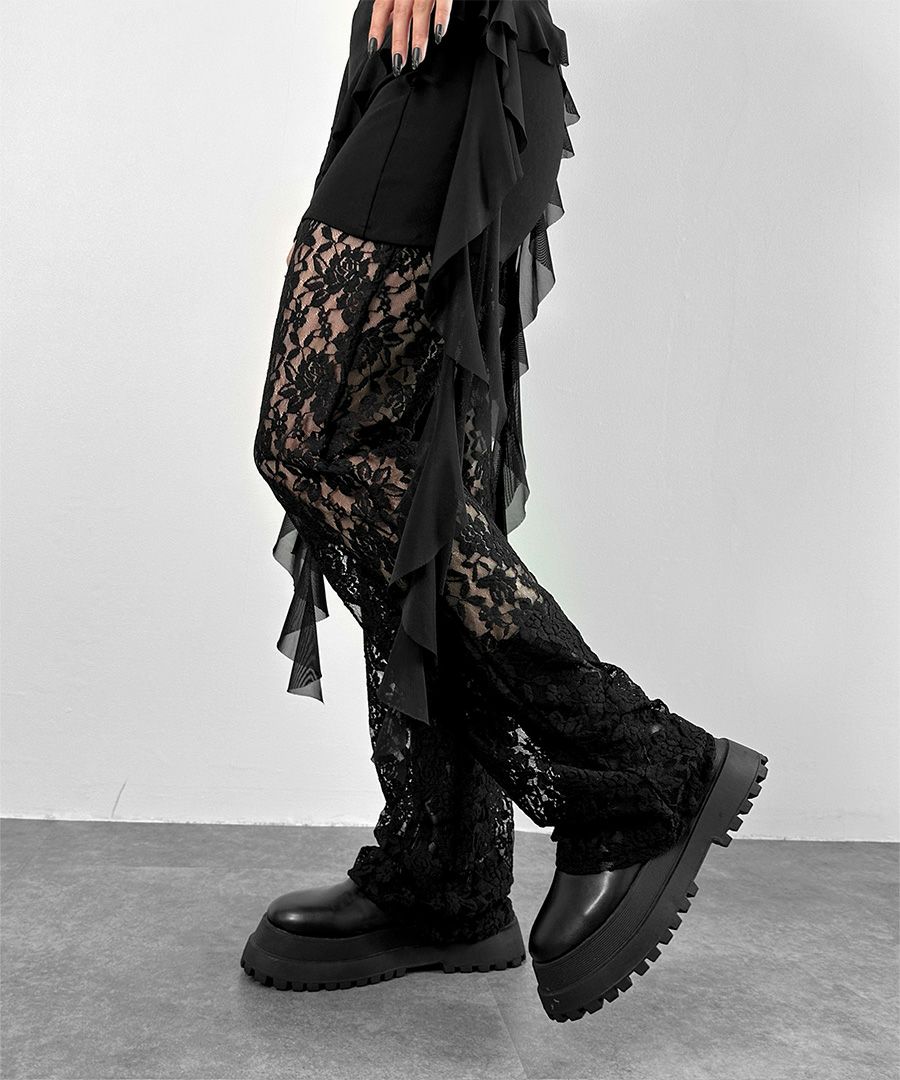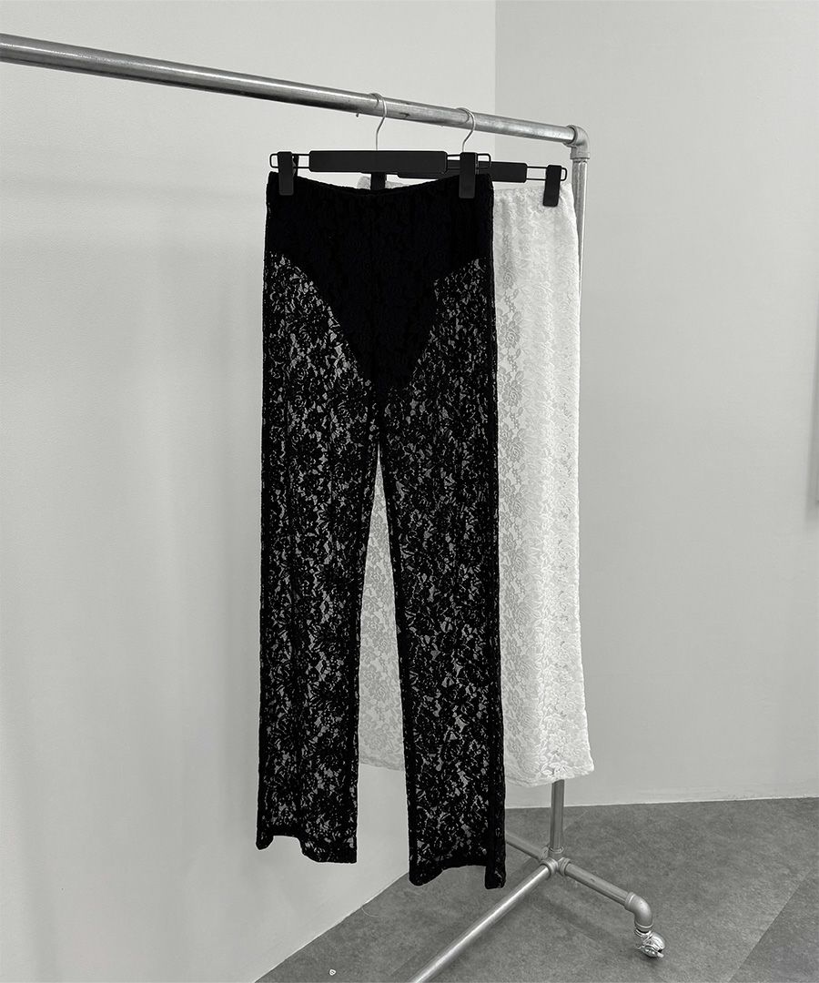 華やかなスタイリングを演出してくれる総レースのストレートパンツ。