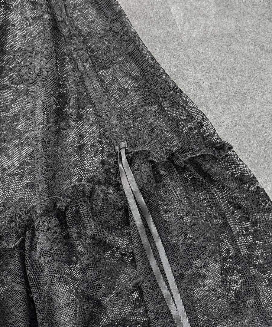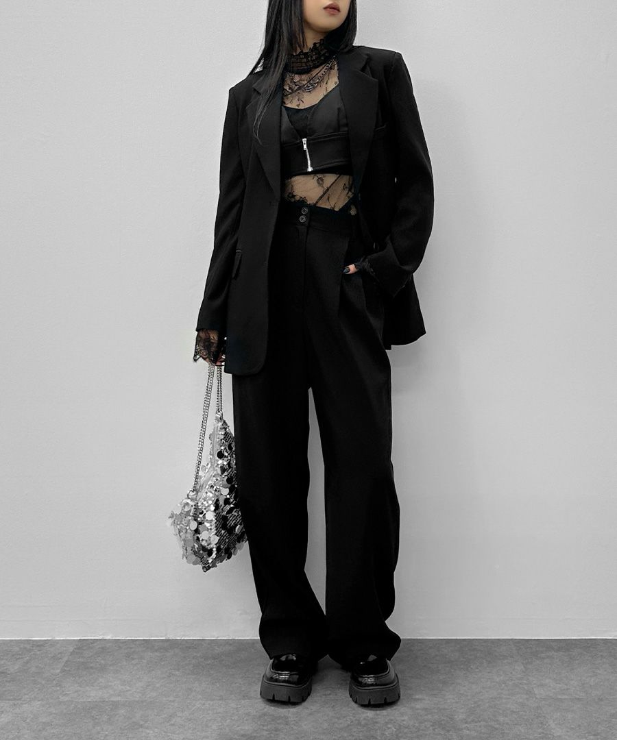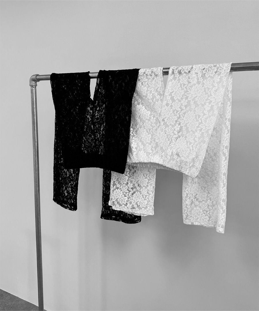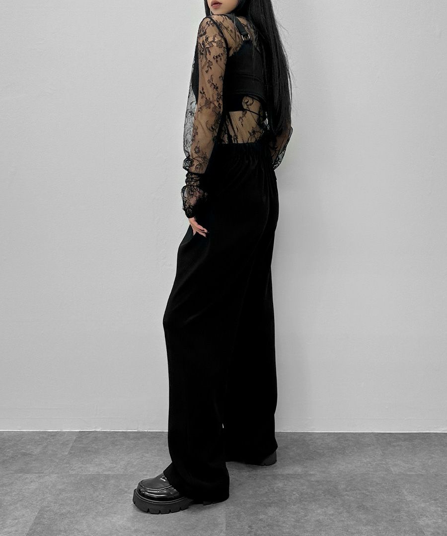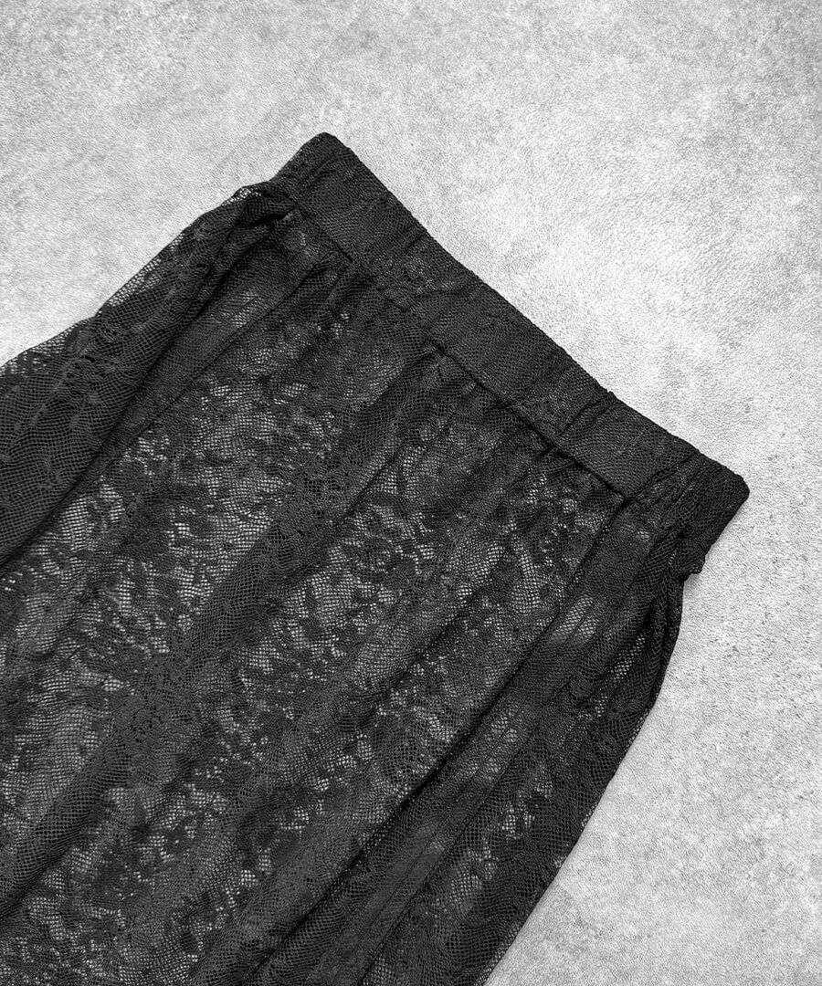 華やかなスタイリングを演出してくれる総レースのストレートパンツ。