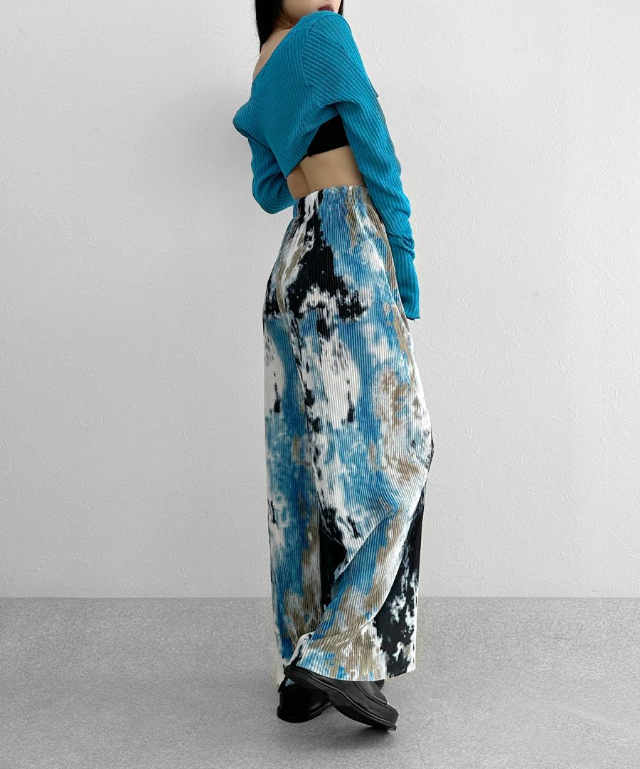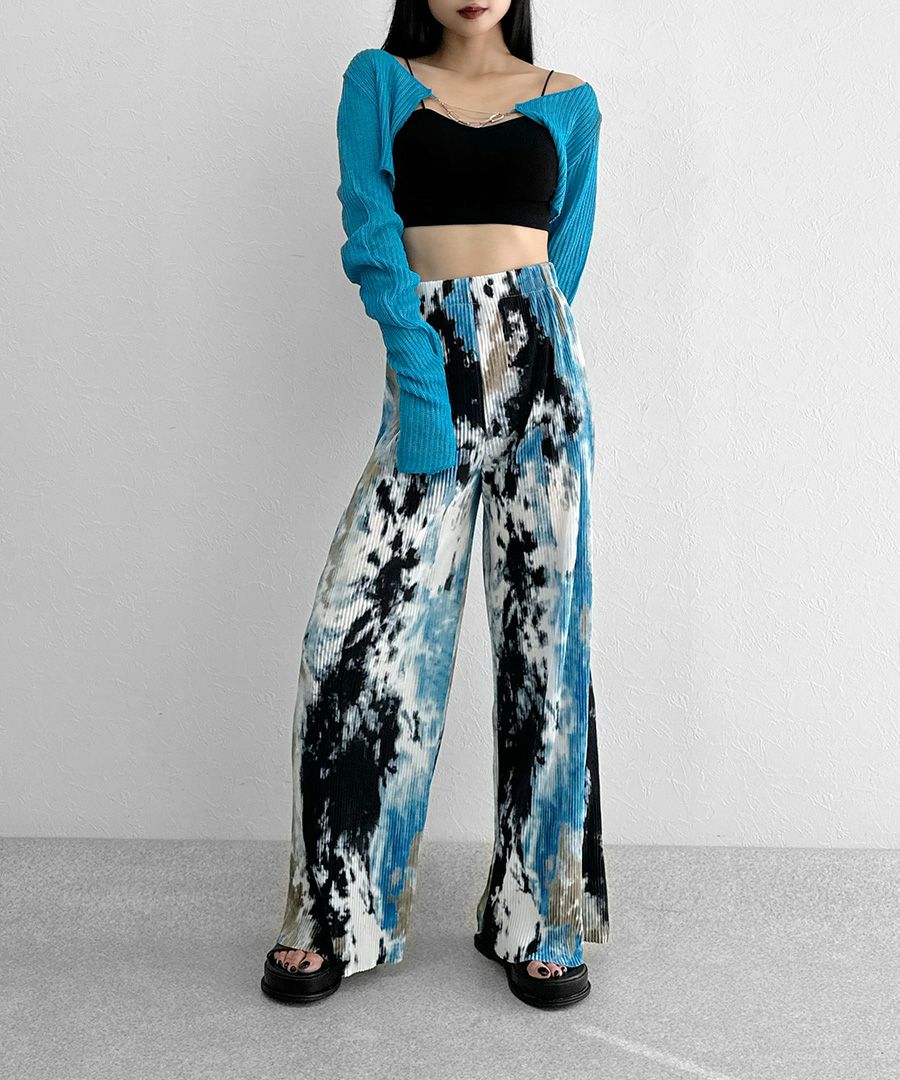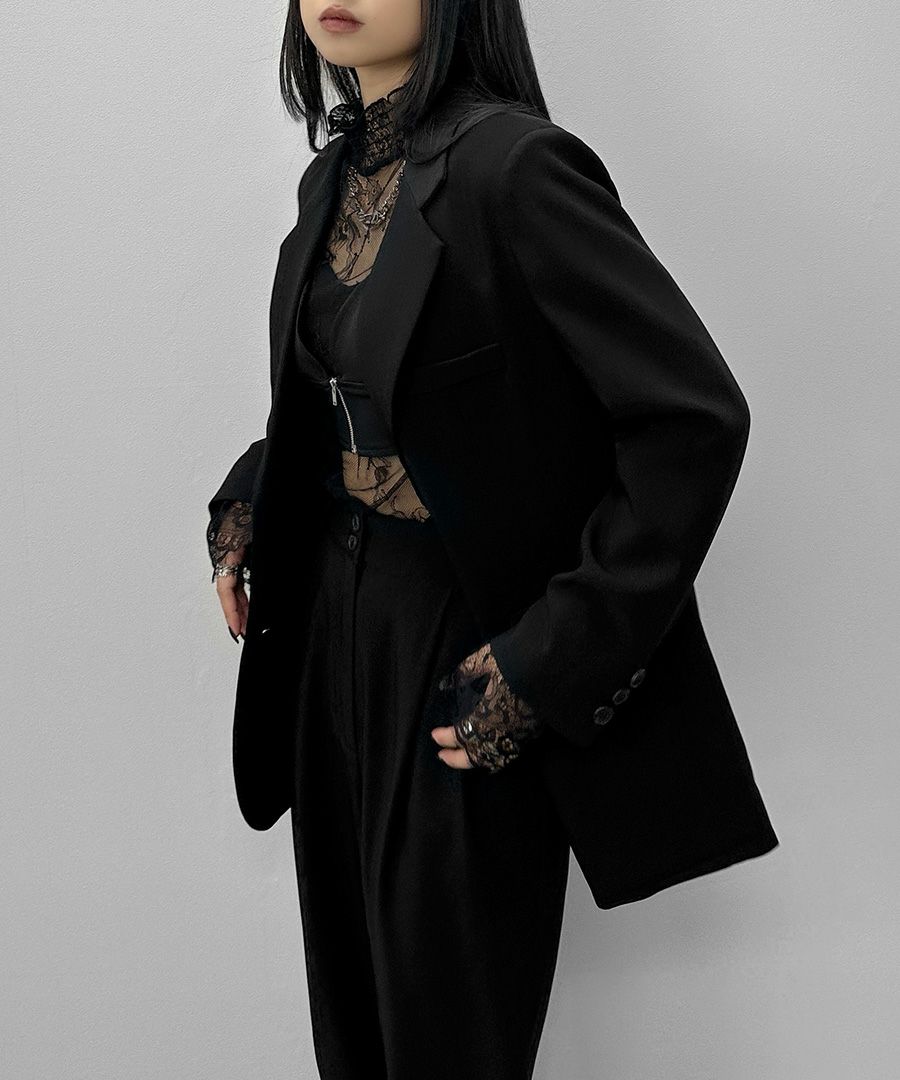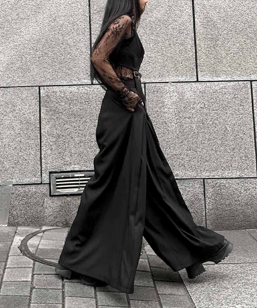華やかなスタイリングを演出してくれる総レースのストレートパンツ。