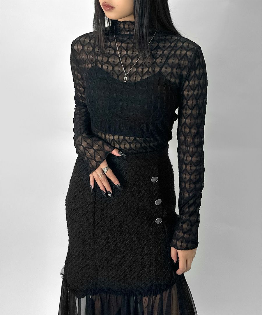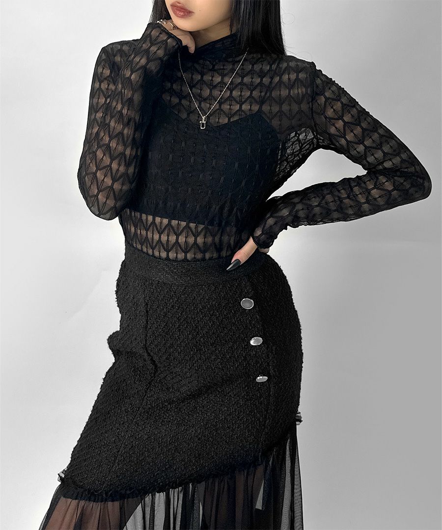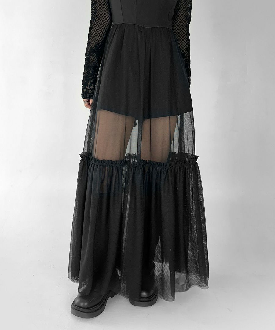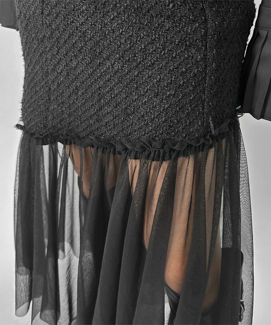 チュール生地を贅沢に使用し、さりげない透け感が楽しめます。