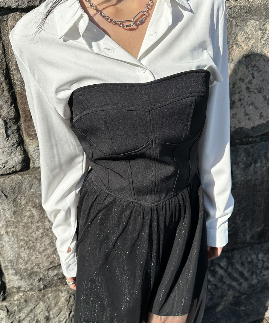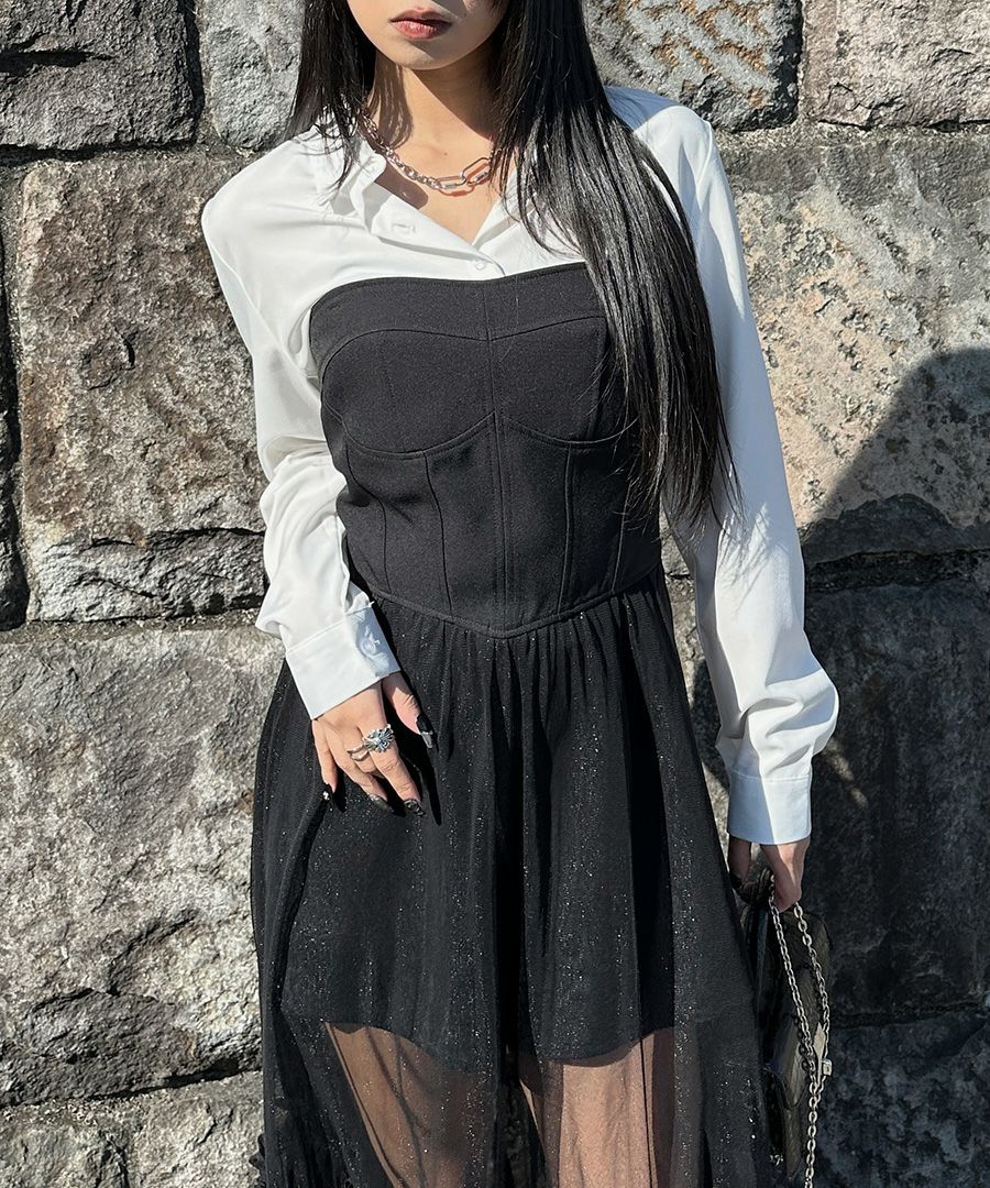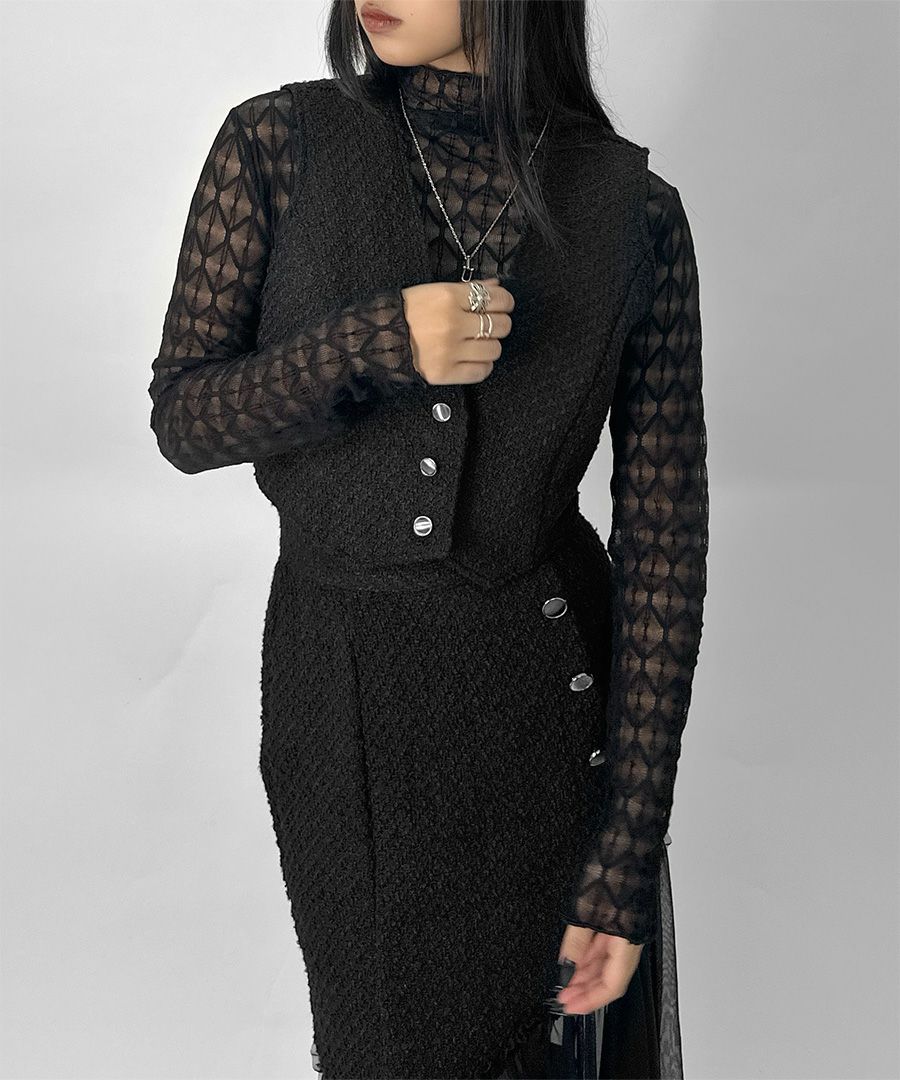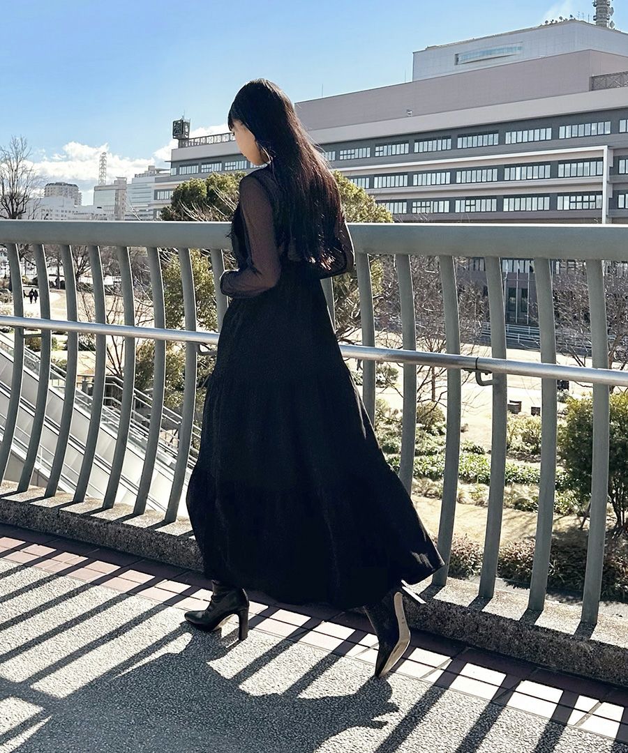 チュール生地を贅沢に使用し、さりげない透け感が楽しめます。