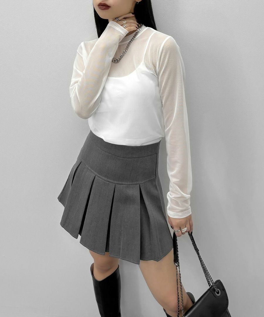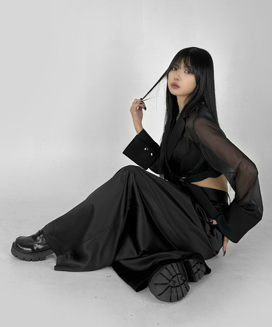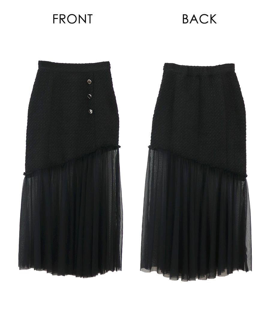 アシンメトリーのカットラインに贅沢なシアー素材が上品なスカート。