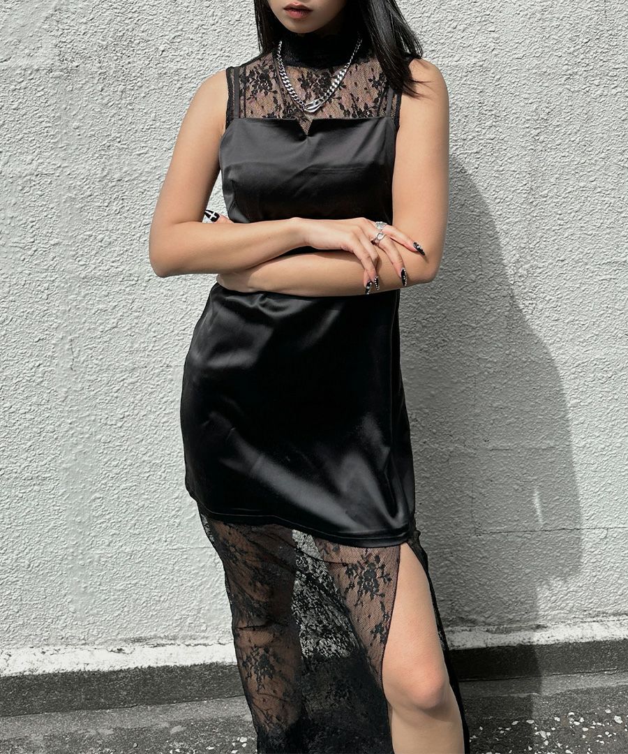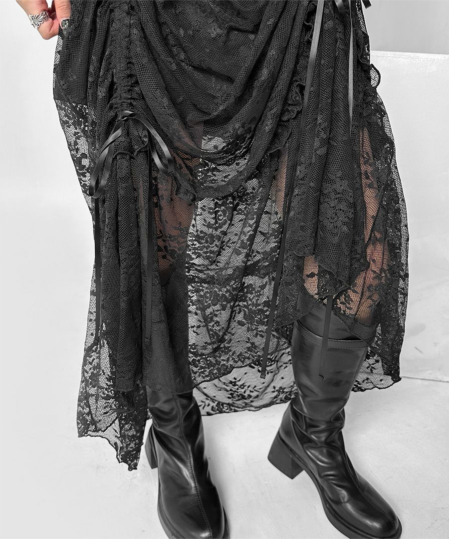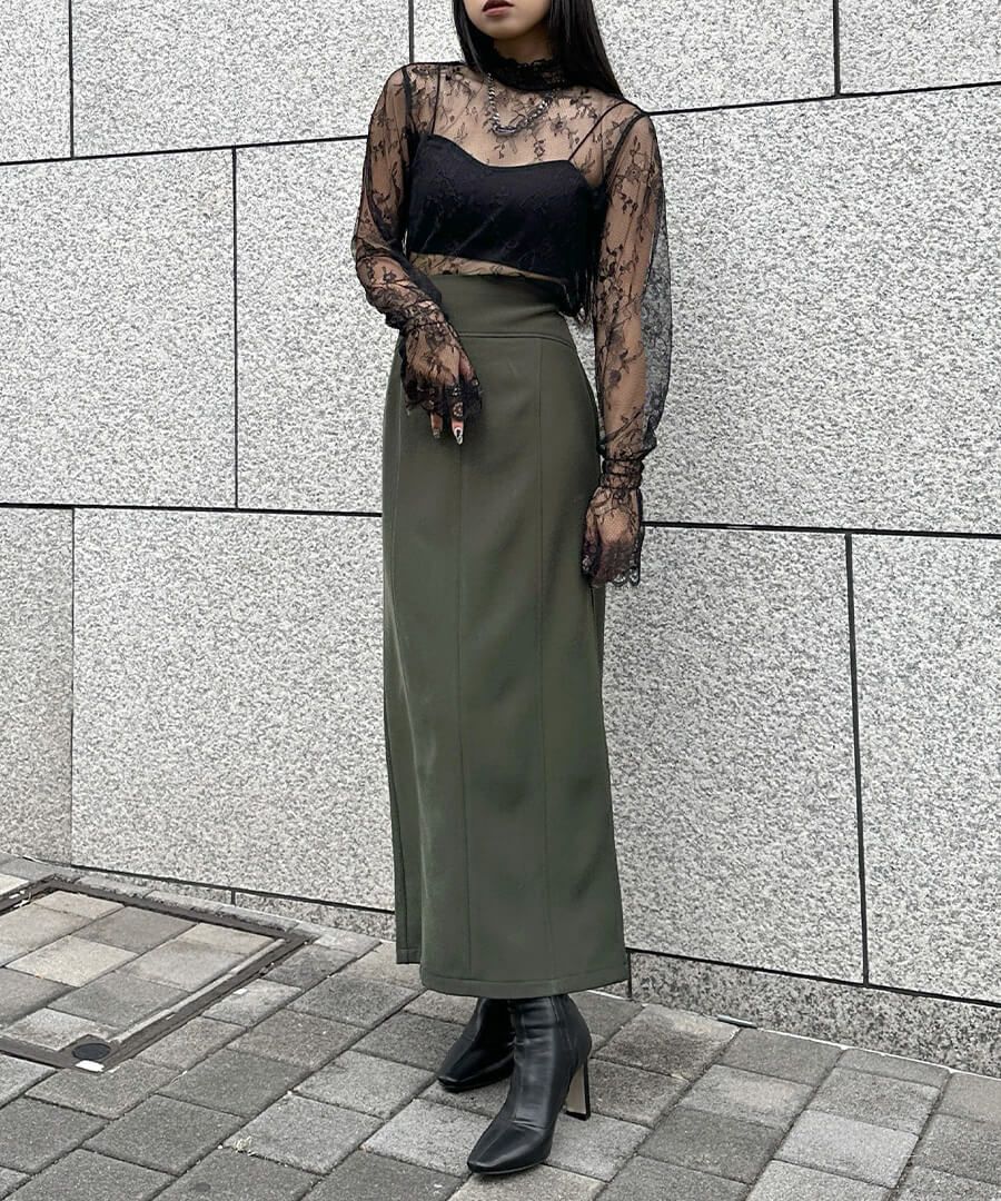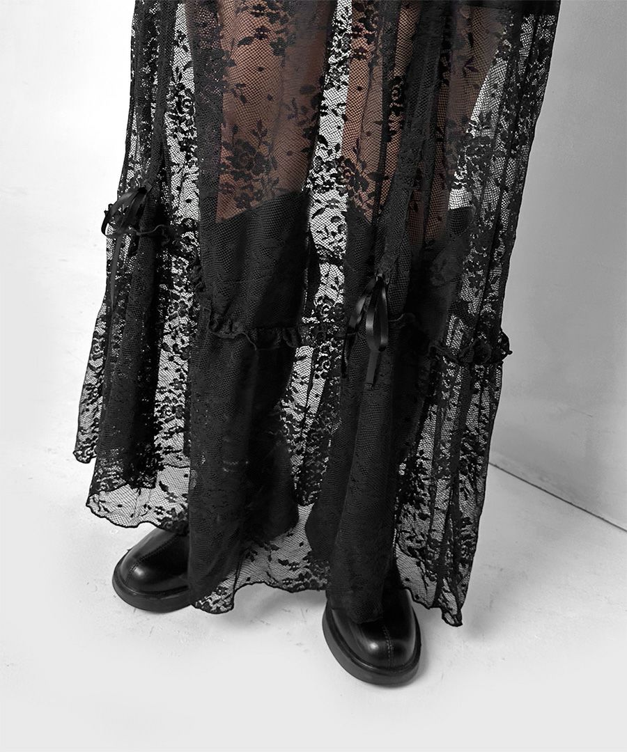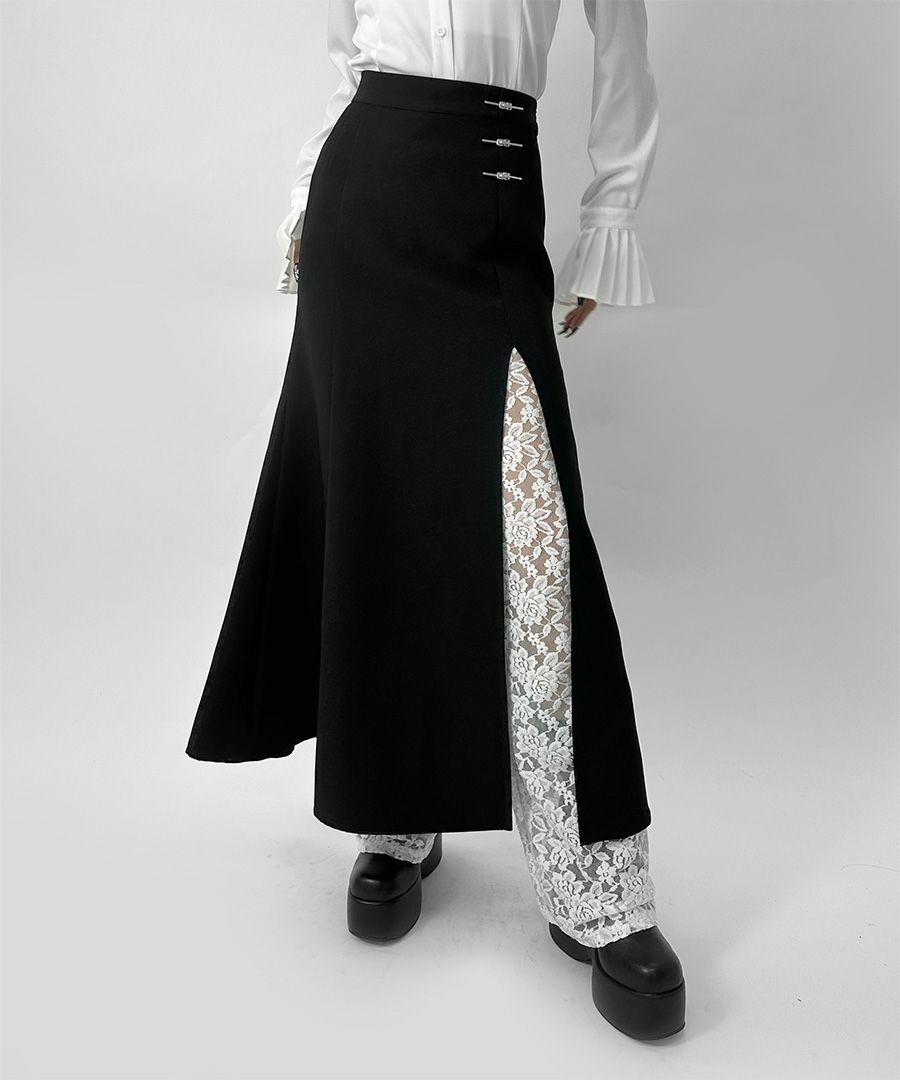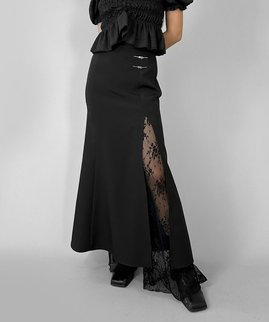 オールレースが華やかなプラスワンに使えるレイヤードスカート。