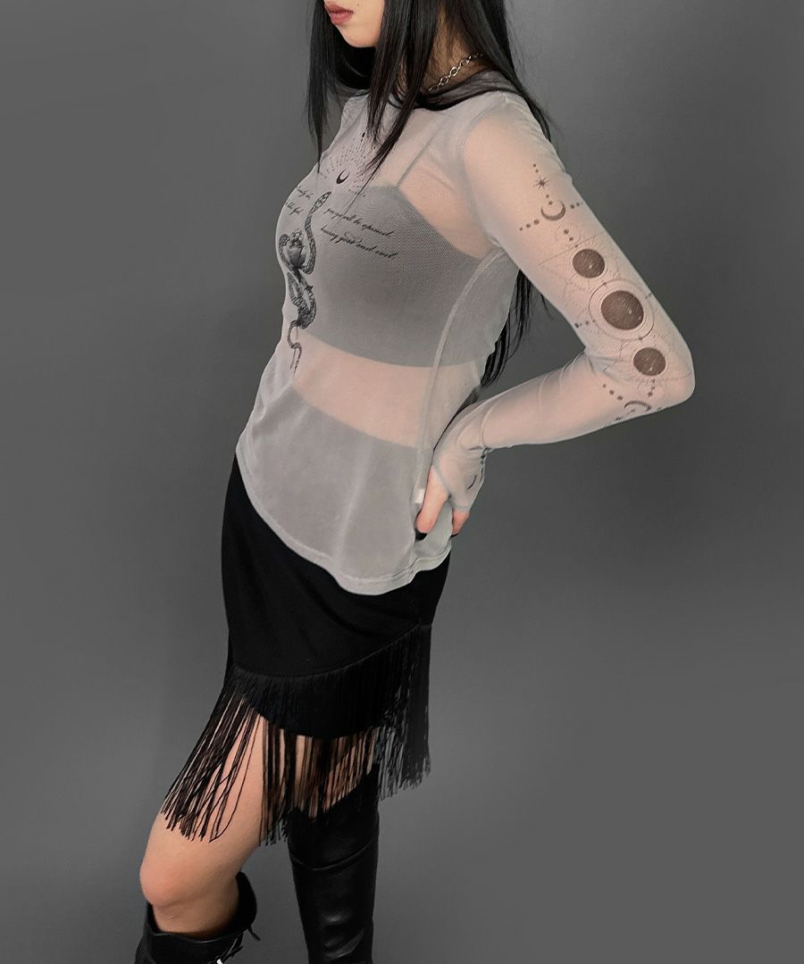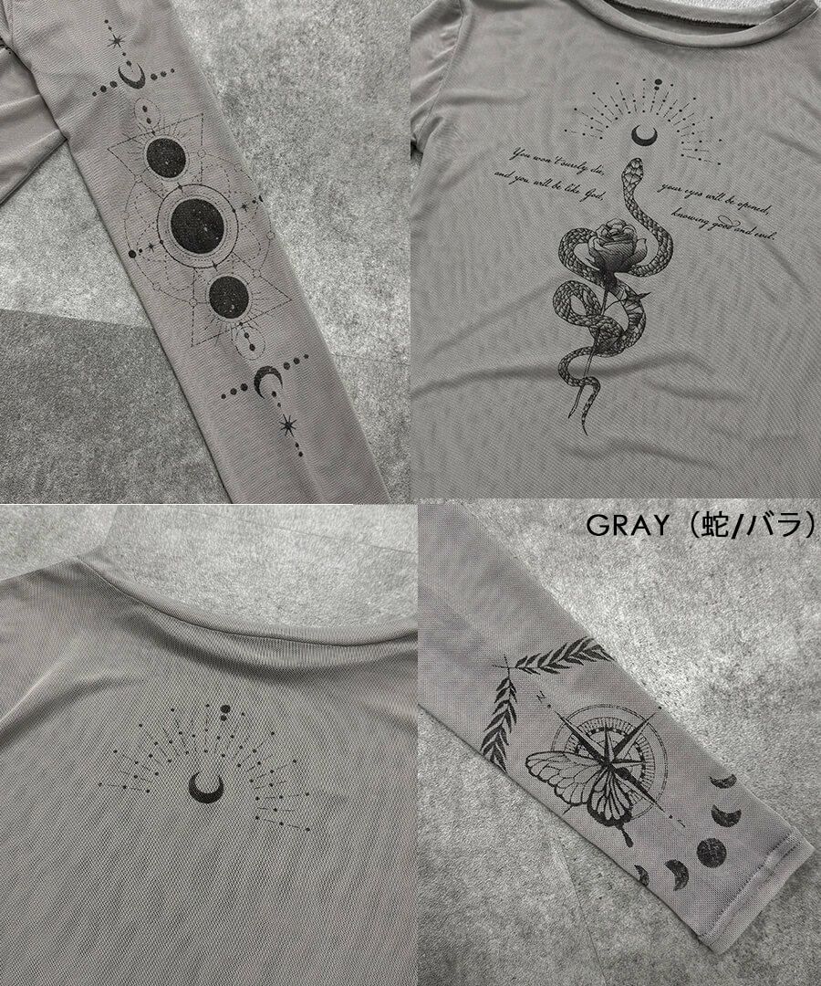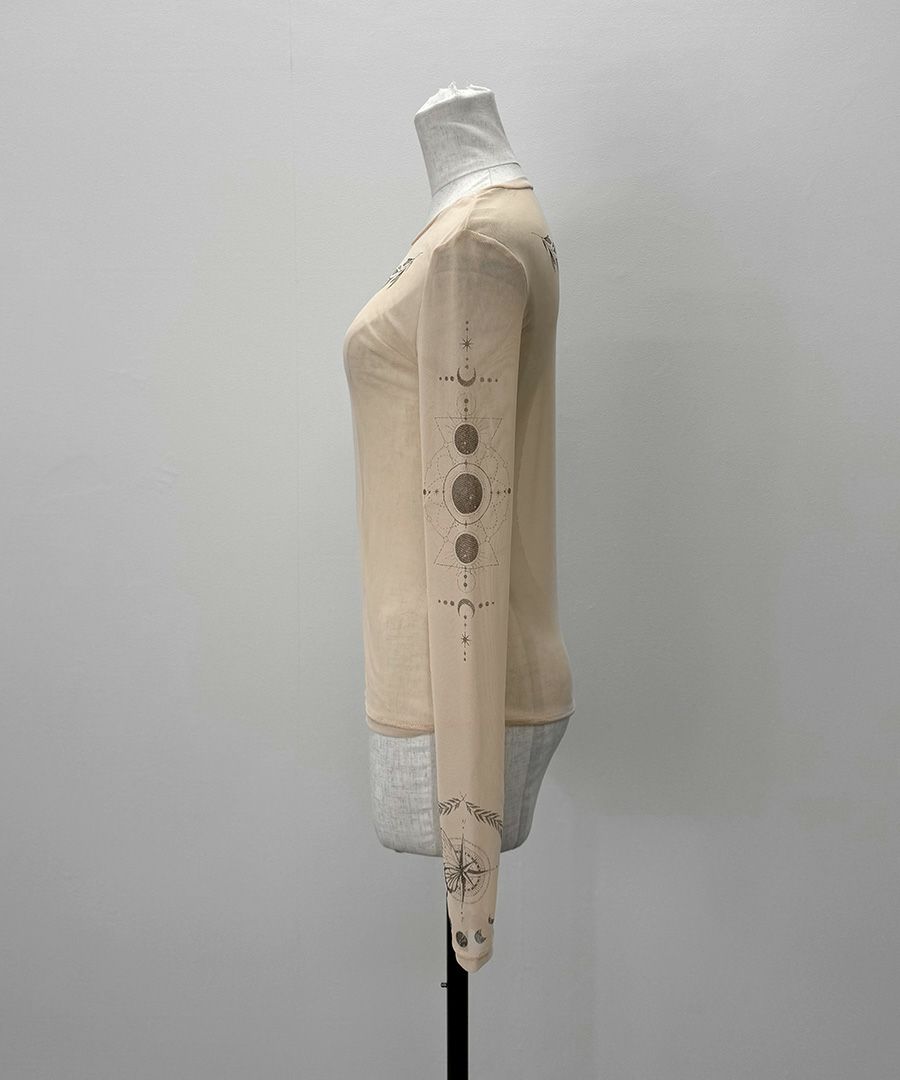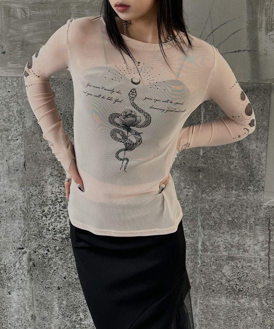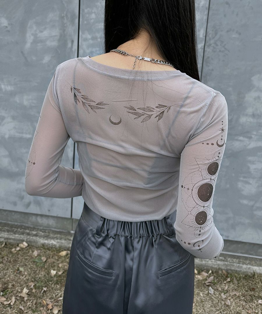 ブランドらしいグラフィックのタトゥー風デザインがモードなトップス。