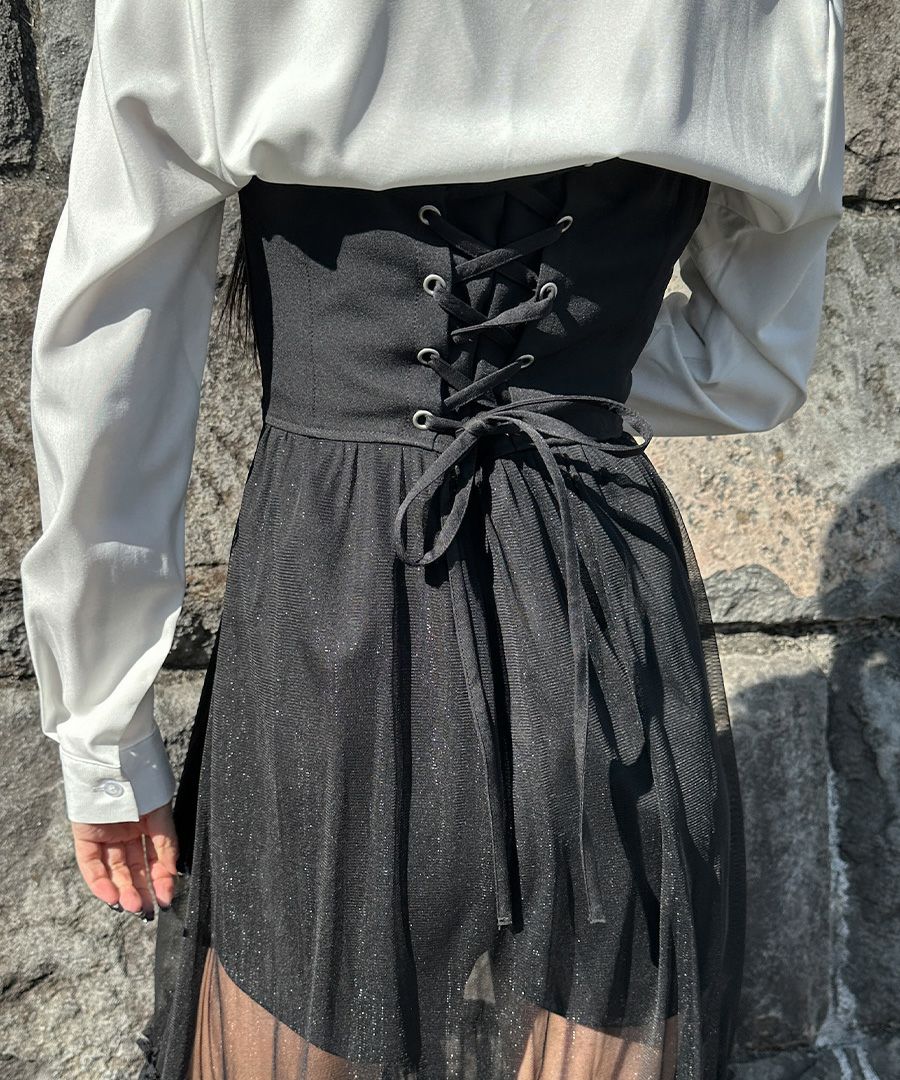 フロント2か所のリボンを絞ればシャーリングを調整して自分らしく着用できます。