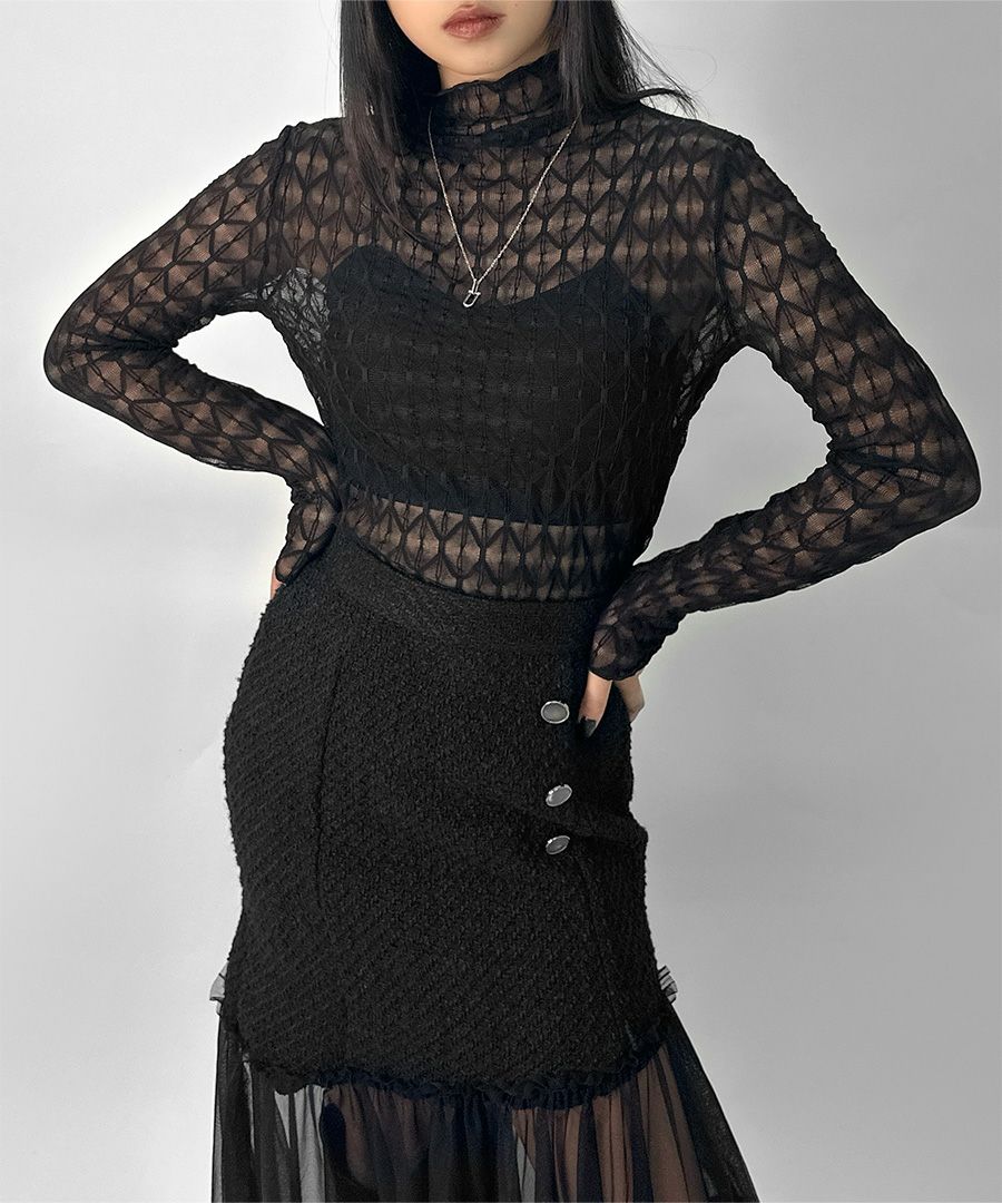 肌見せが苦手な方も楽しみやすい程よい透け感を演出。