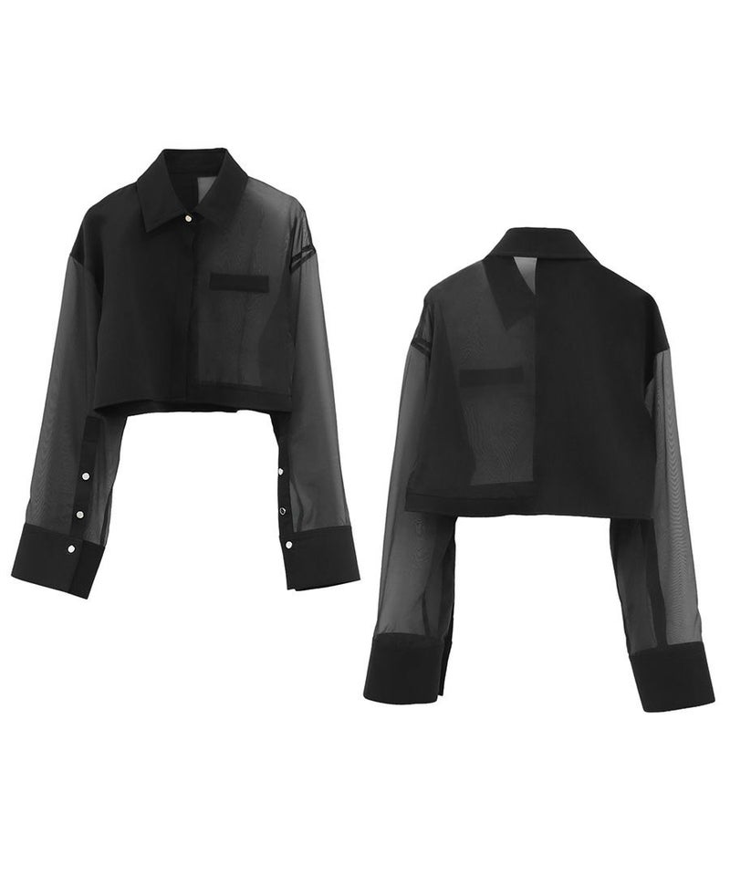 シンプルなシルエットに異素材をMIXしたシャツ。 肩を落として身幅にゆとりを持たせたことで 羽織るだけでこなれた印象を与えてくれます。 クロップド丈でバランス良く仕上げ スタイリングに自然な抜け感をプラス◎ シルバーボタンがさりげないアクセントとなり モノトーンコーデにシャープな印象を添えてくれます。