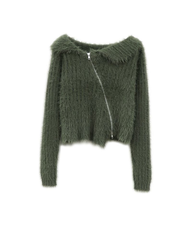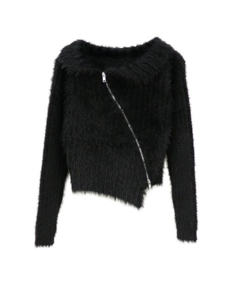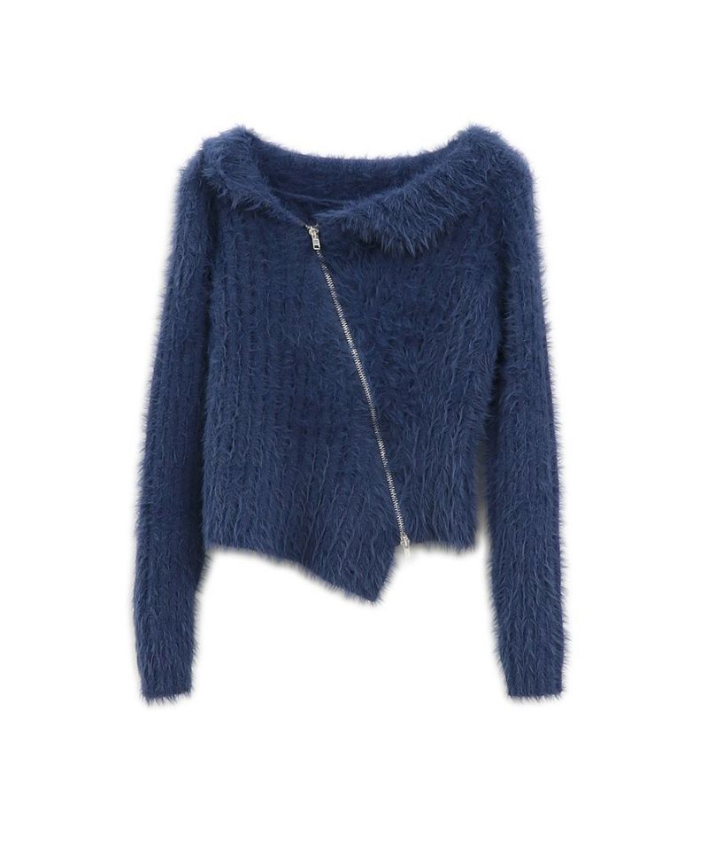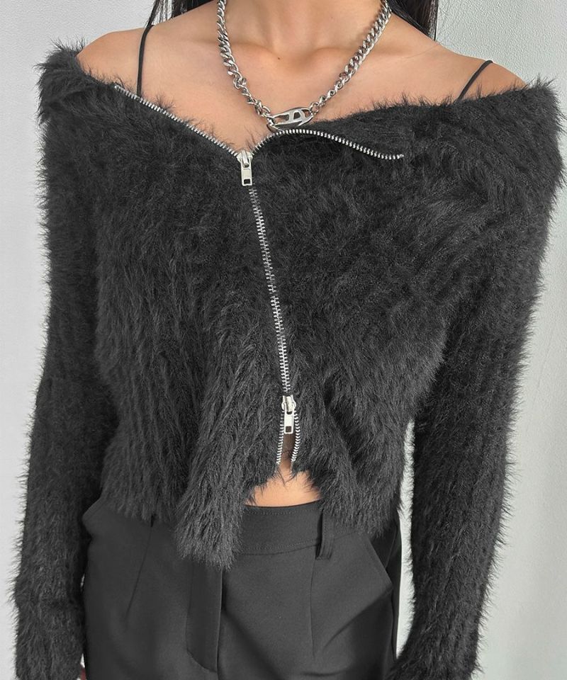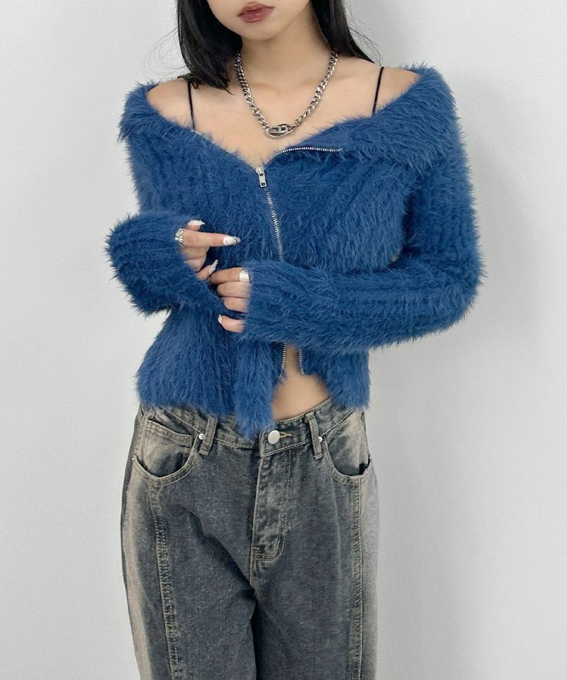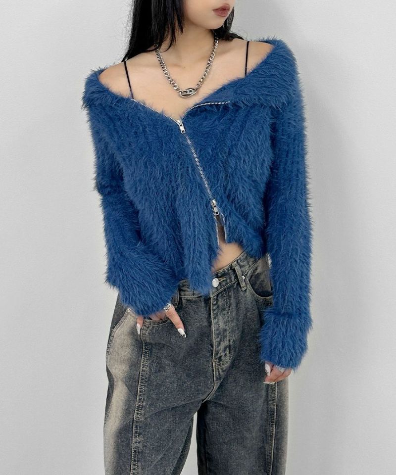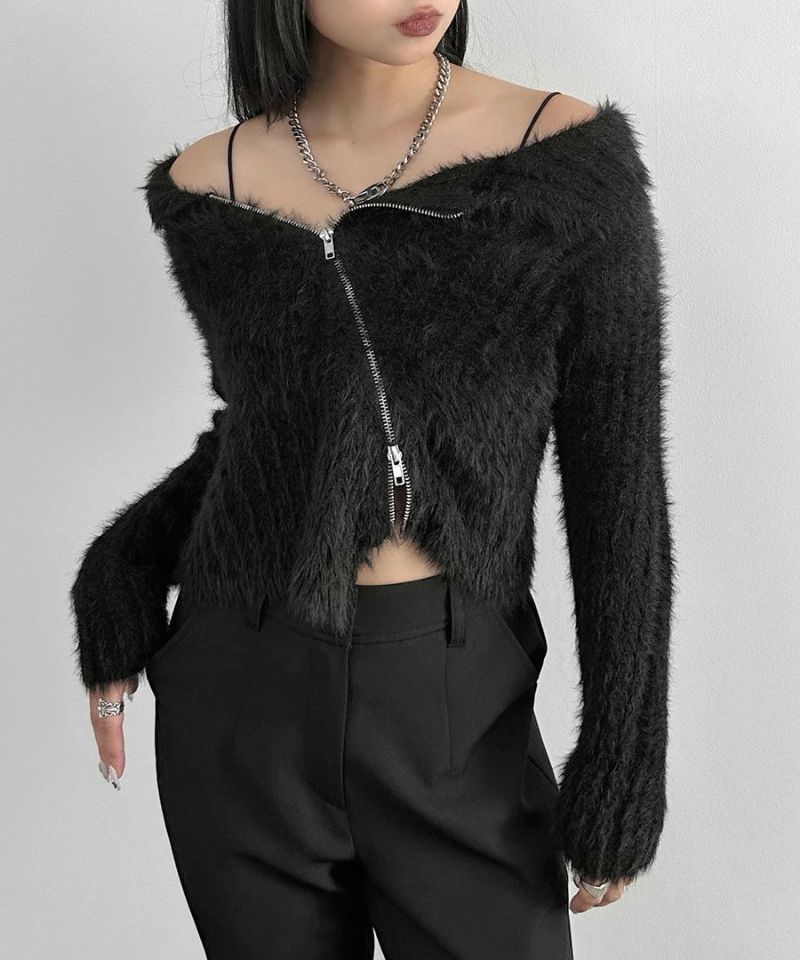 アシメジップオフショルシャギーニット