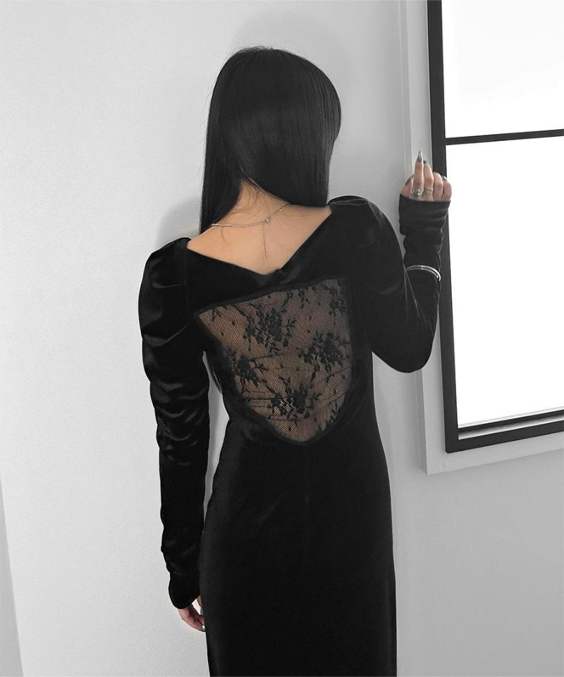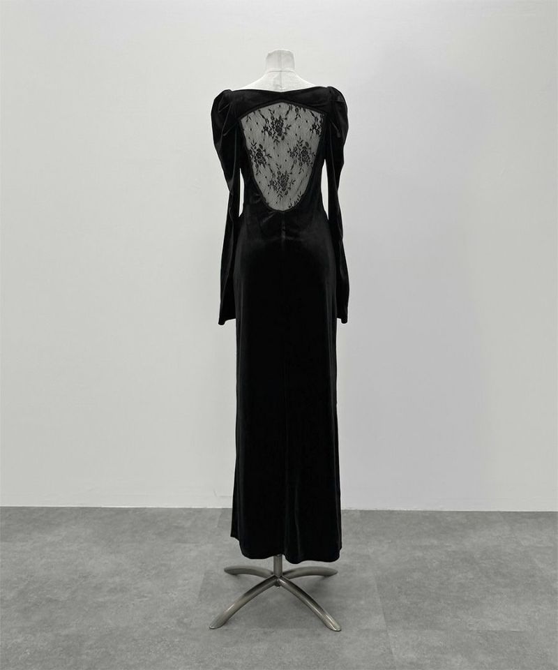 ゴシックモードな雰囲気漂うワンピース。 上品なシルエットにトレンドを落とし込んだ1枚です。 胸元のギャザーと肩のパフスリーブが ドレッシーなスタイルを演出。 大胆なバックレースデザインで 360度どこからでも美しく魅せてくれます。