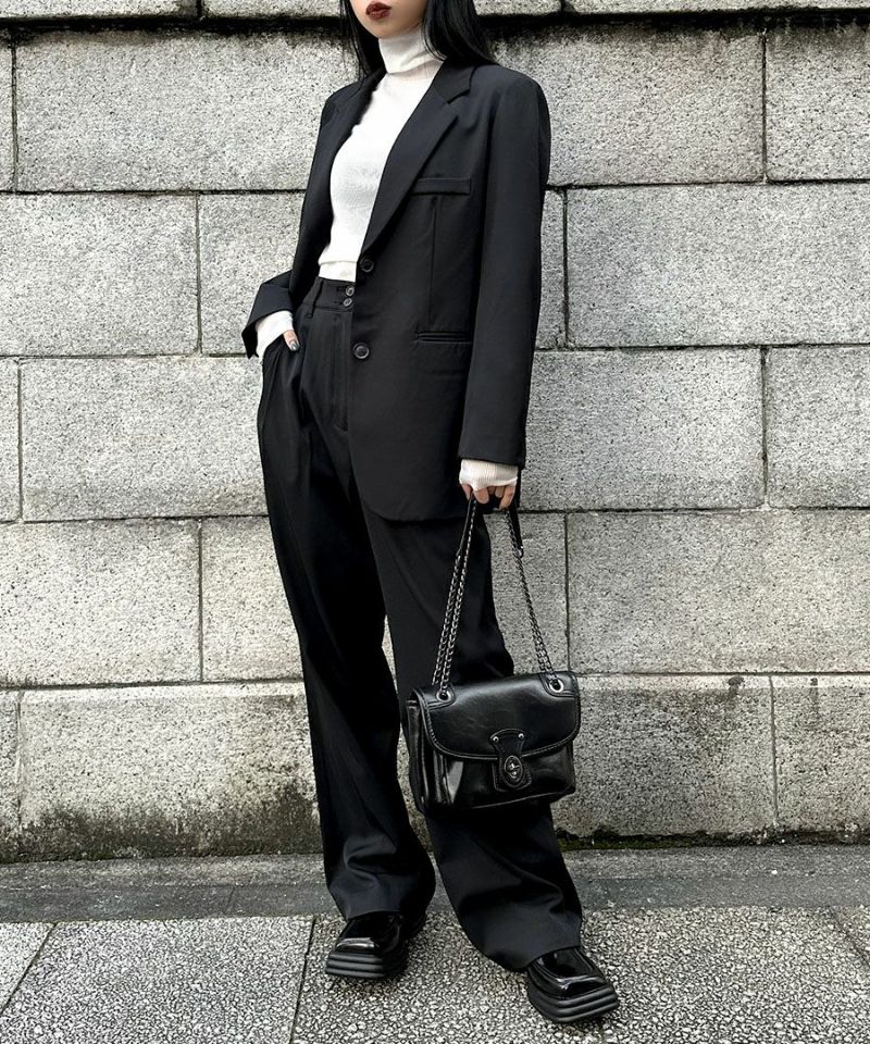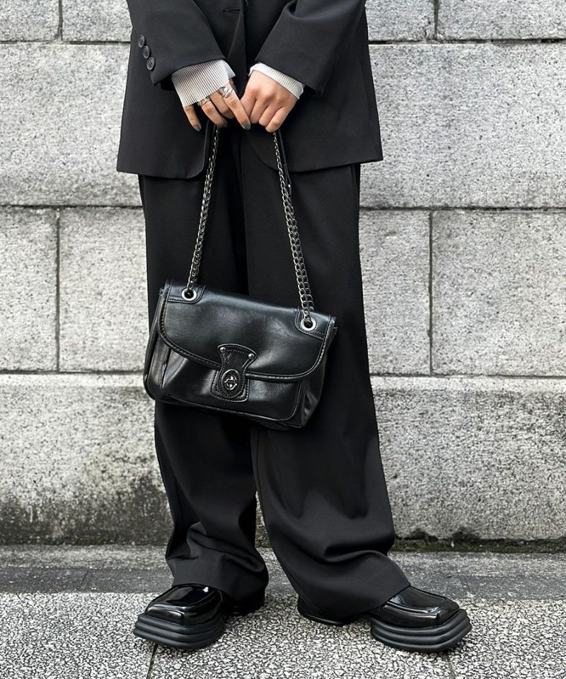 エッジの効いたデザインバッグは シンプルなコーデを一気にワンランク上に仕上げてくれます。 デイリーコーデからオケージョンまで幅広く活躍。