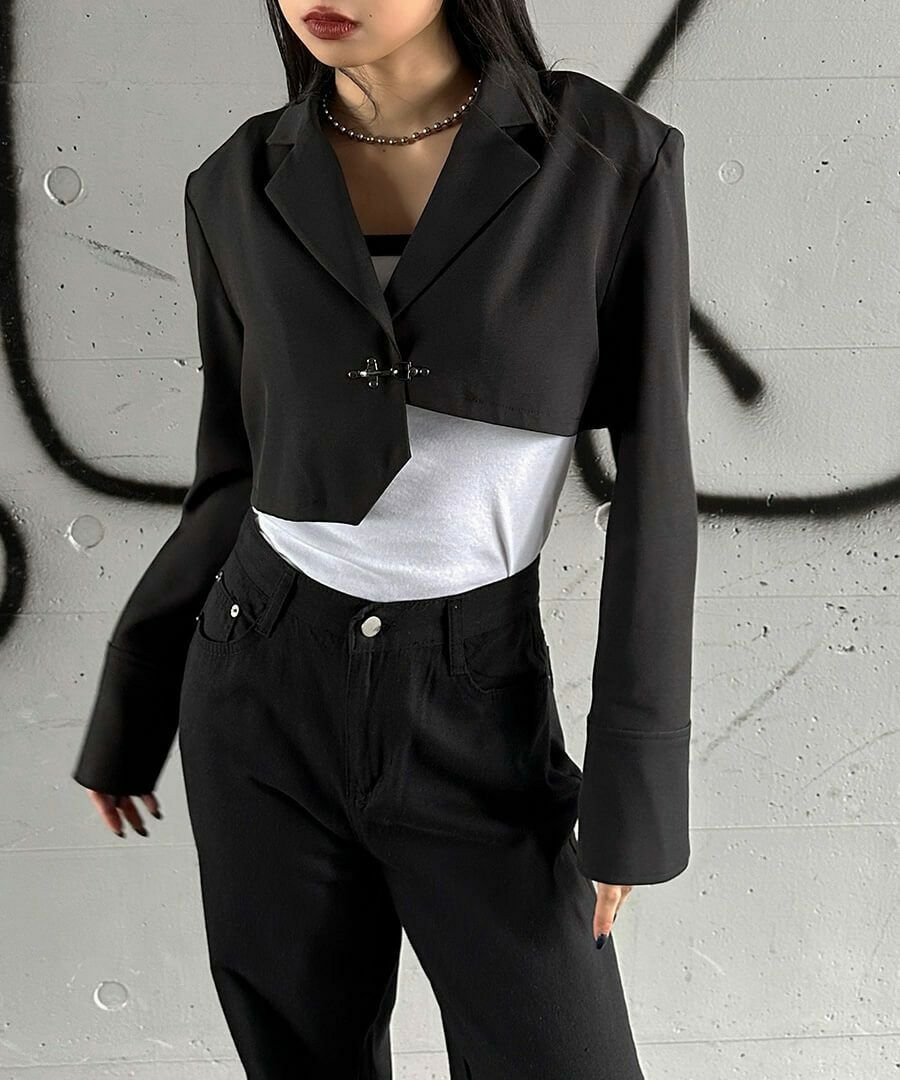 他の画像を見る Asymmetrical cropped jacket ORIGINAL HITITEM ¥ 8,800 税込 販売期間 2025/07/04 20:00 〜 カートに入れる お気に入りに登録する
