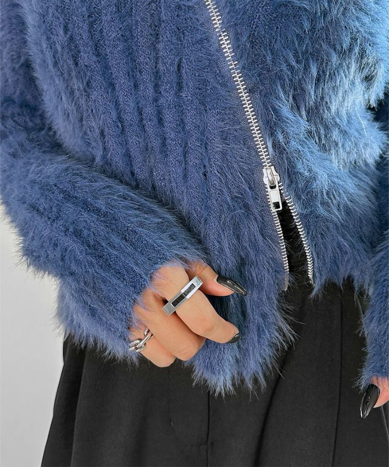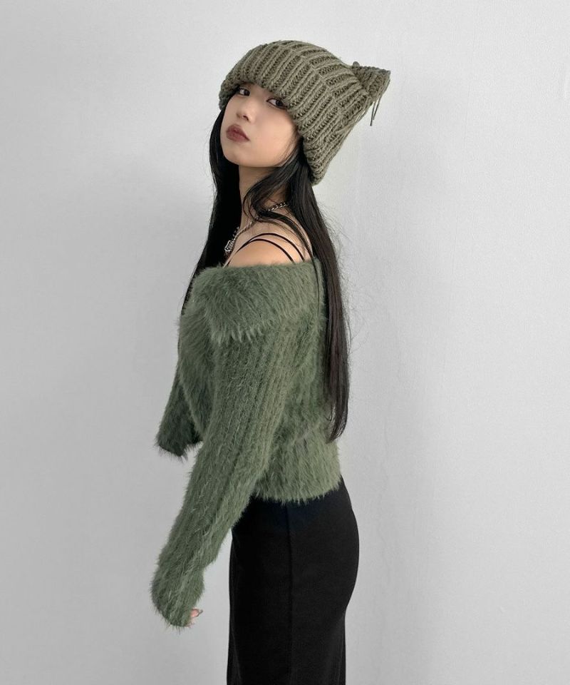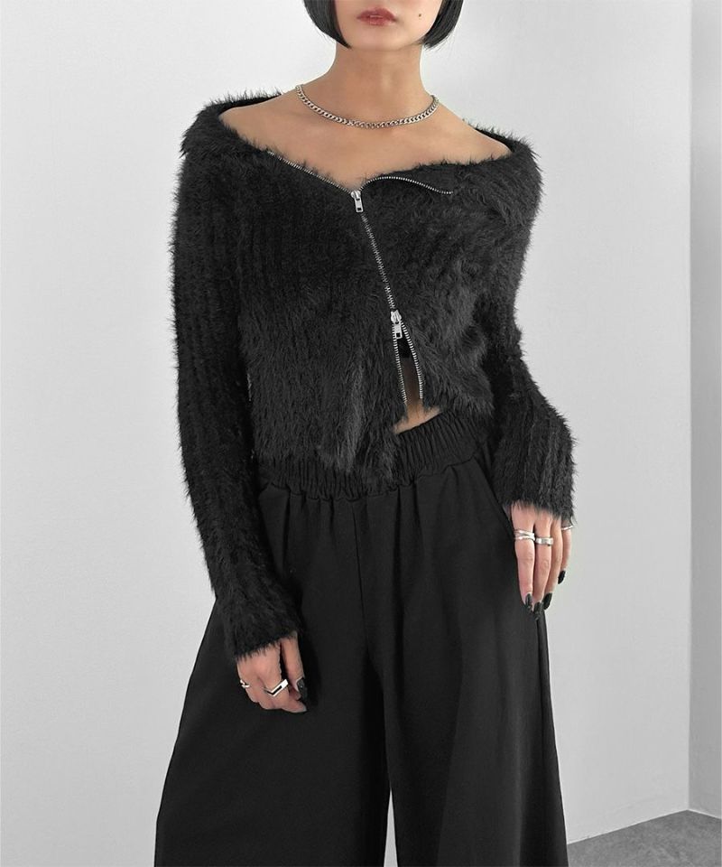 アシメジップオフショルシャギーニット