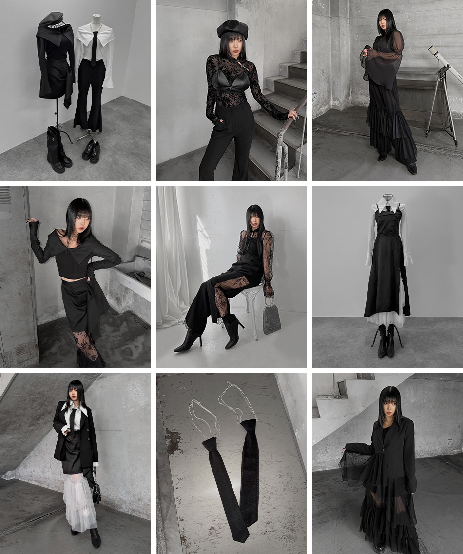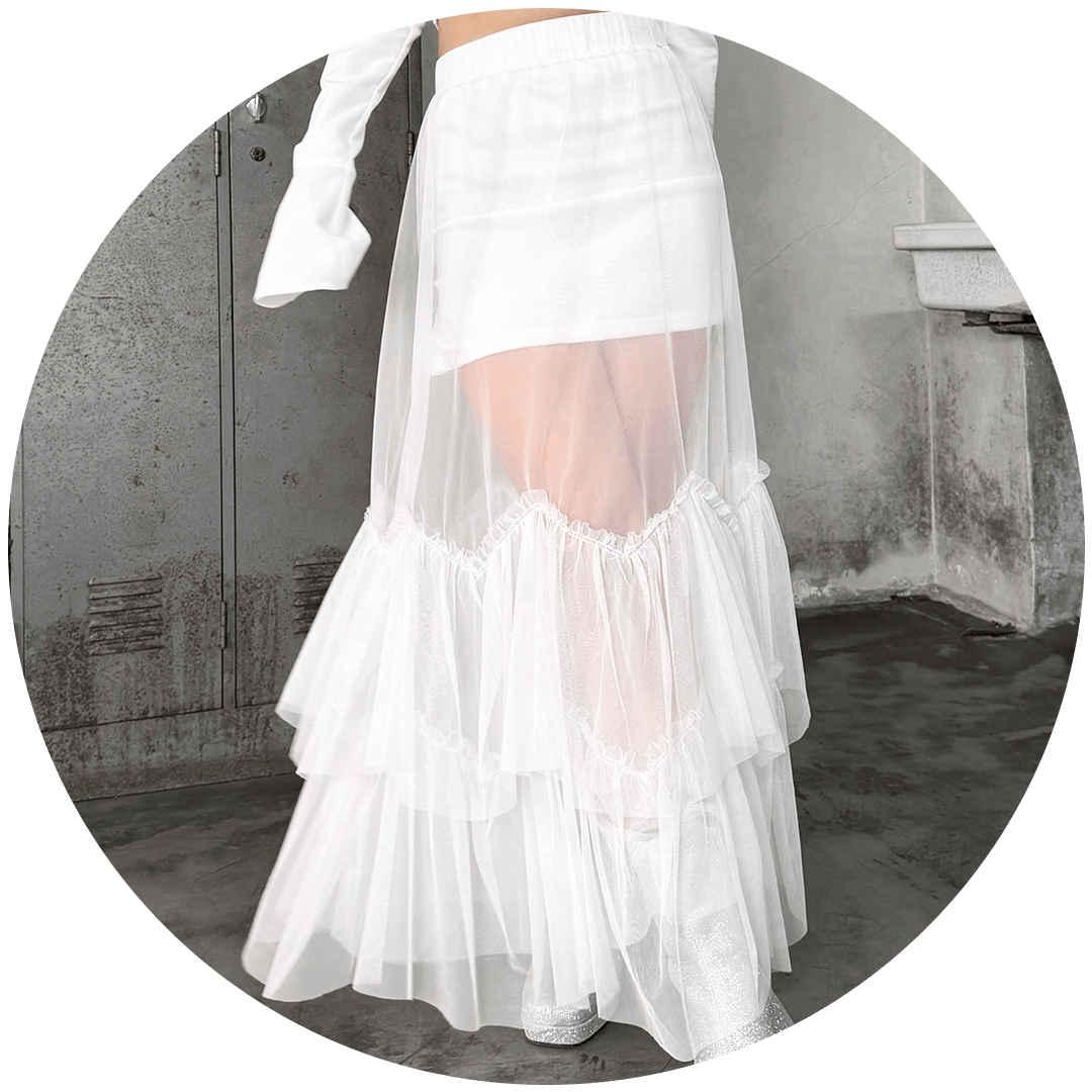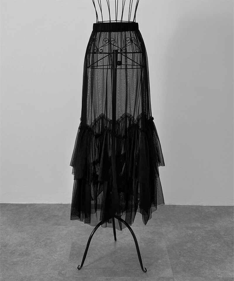 ベーシックなBLACKとチュール素材を重ねたTULLE BLACK
