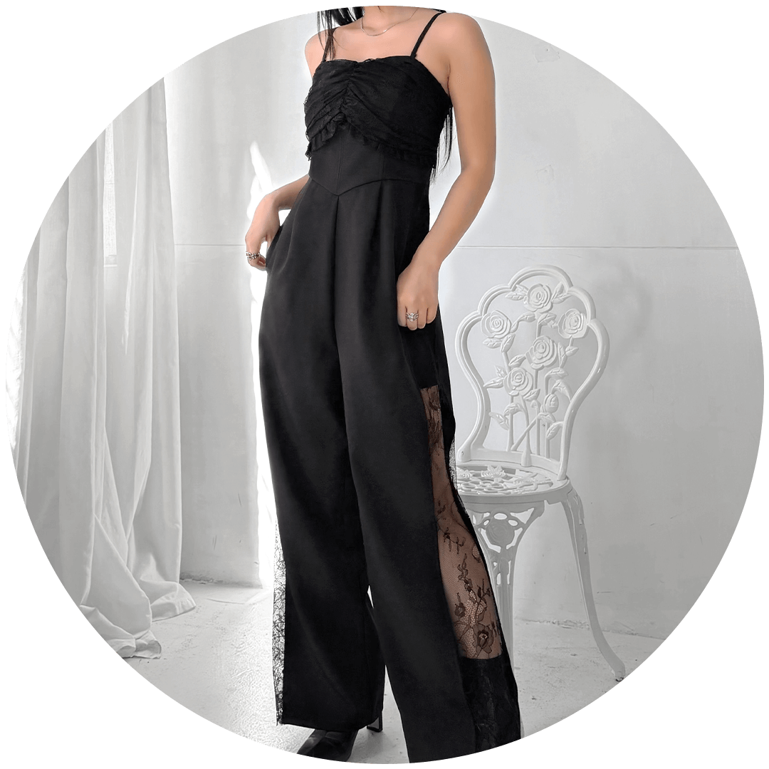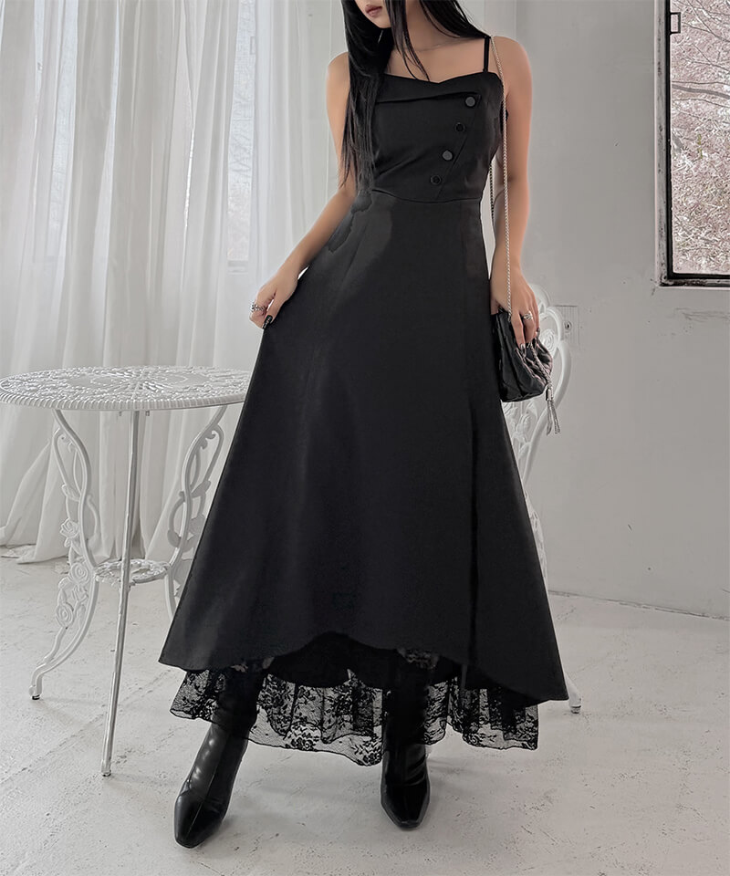 すっきりとした縦ラインと胸元のレース生地で上品な印象に仕上がった一枚。
