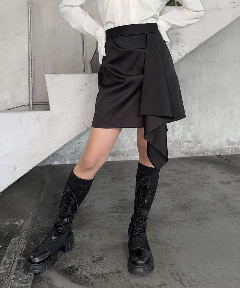 フロントに施されたスリットデザインからレースやチュールなどのインナースカートを