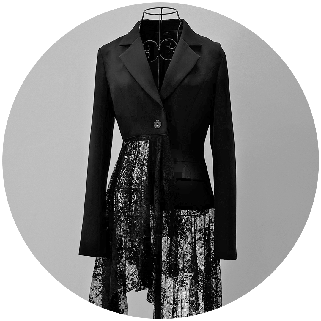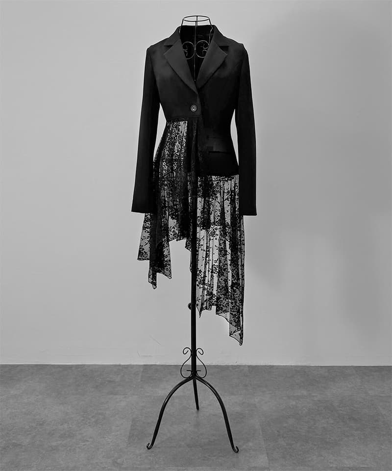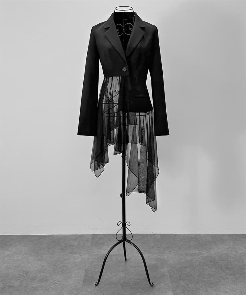 チュールorレースの異素材をドッキングした存在感のあるジャケット。