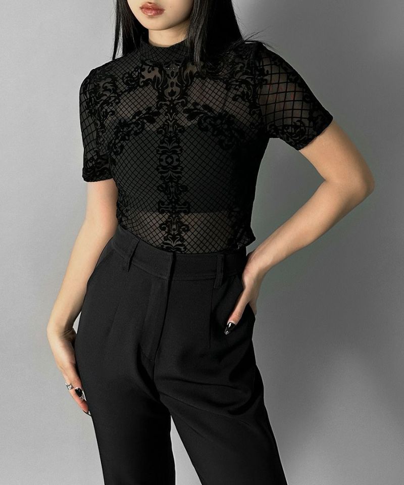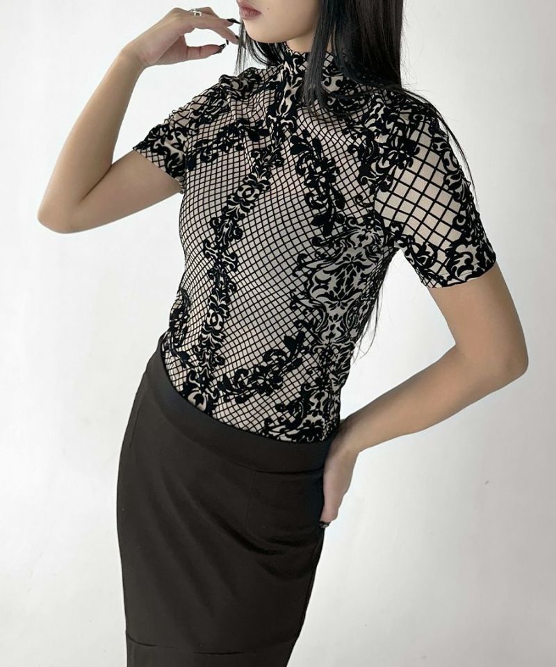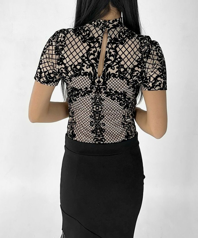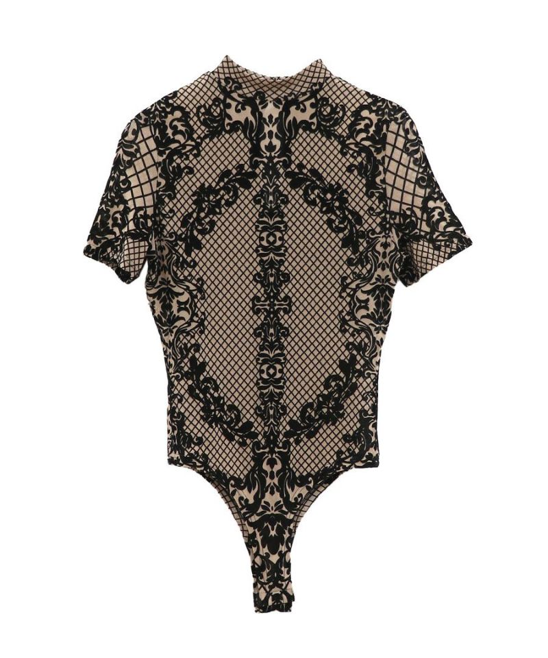 レースデザイン半袖ボディスーツ
