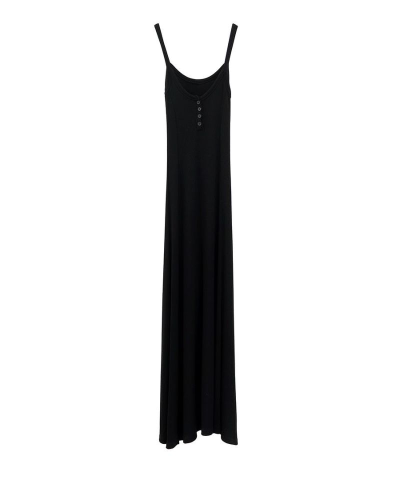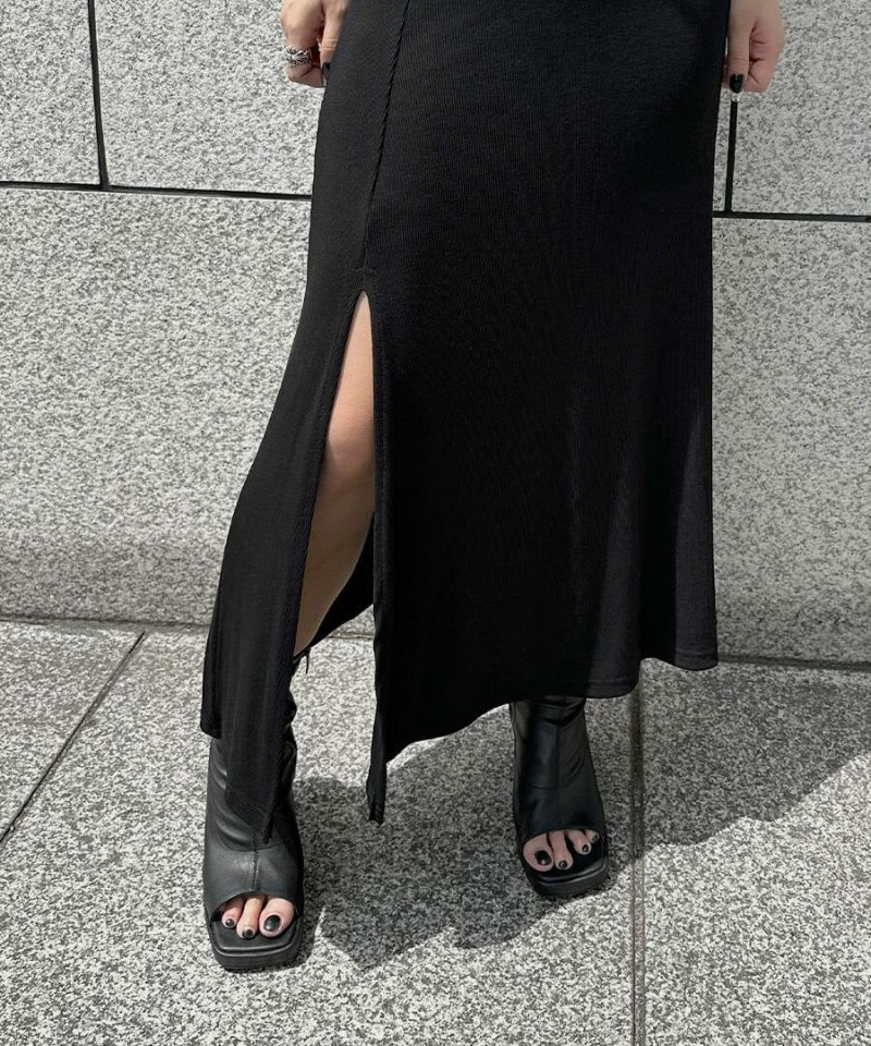 デイリー使いしやすいシンプルなワンピース。 すっきりとしたセミフレアシルエットが モードな印象を与えてくれる1枚です。 フロントスリットは、歩きやすいだけではなく こなれ感を演出してくれます。