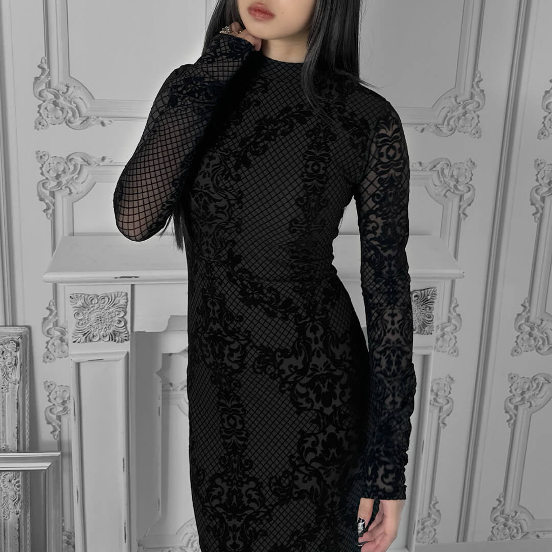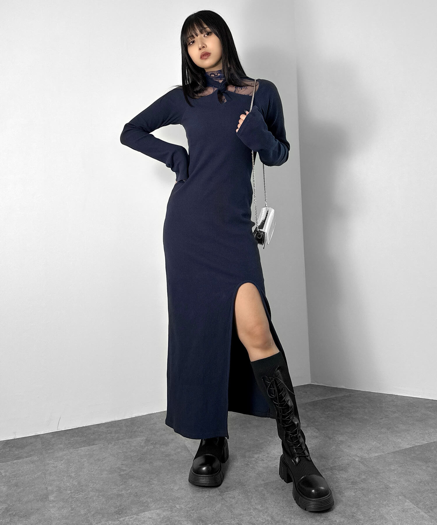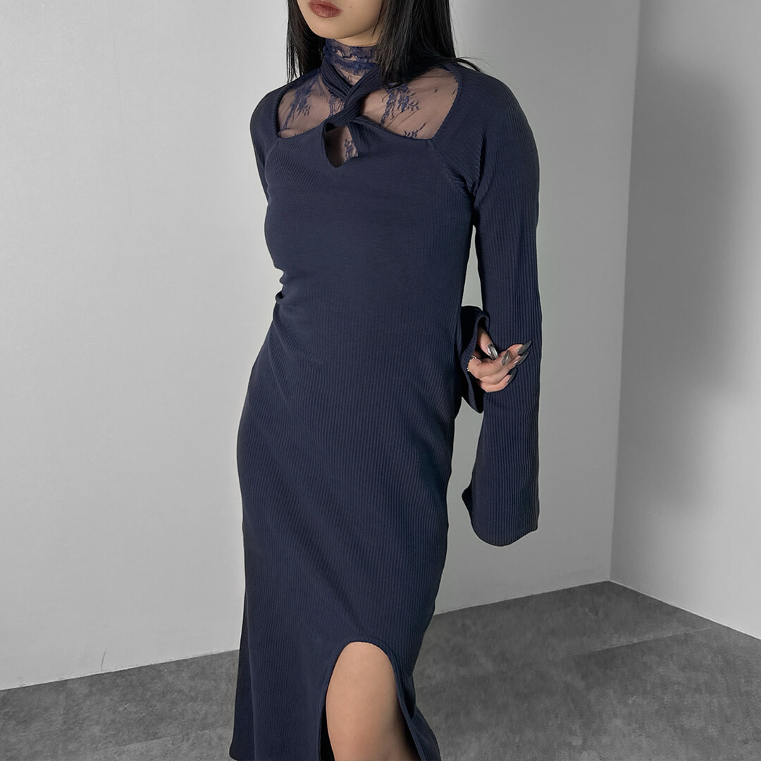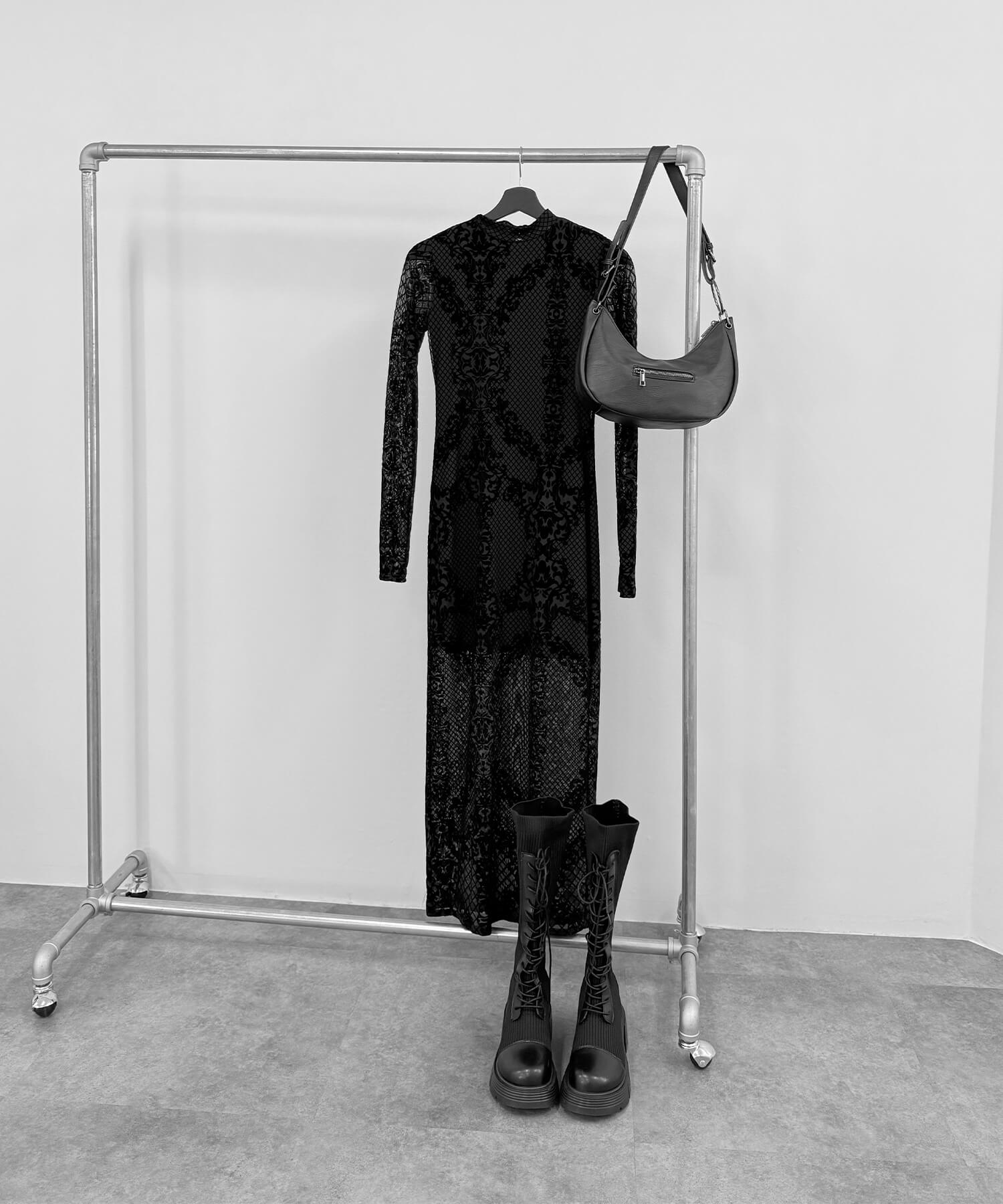 ゴシックなレースデザインを全面にあしらった存在感のあるワンピース。