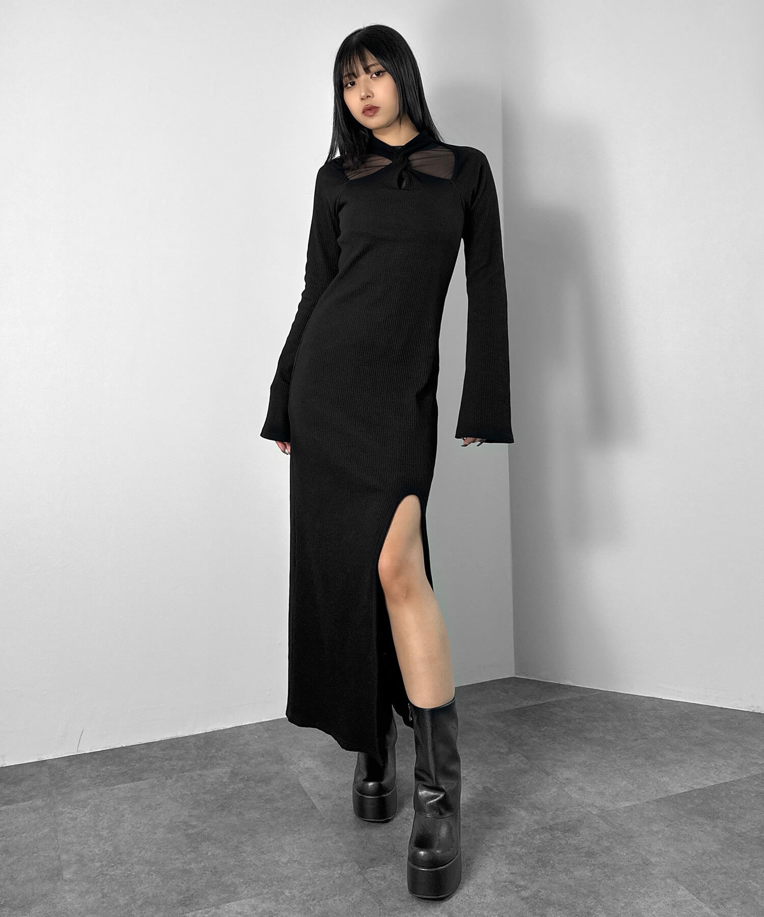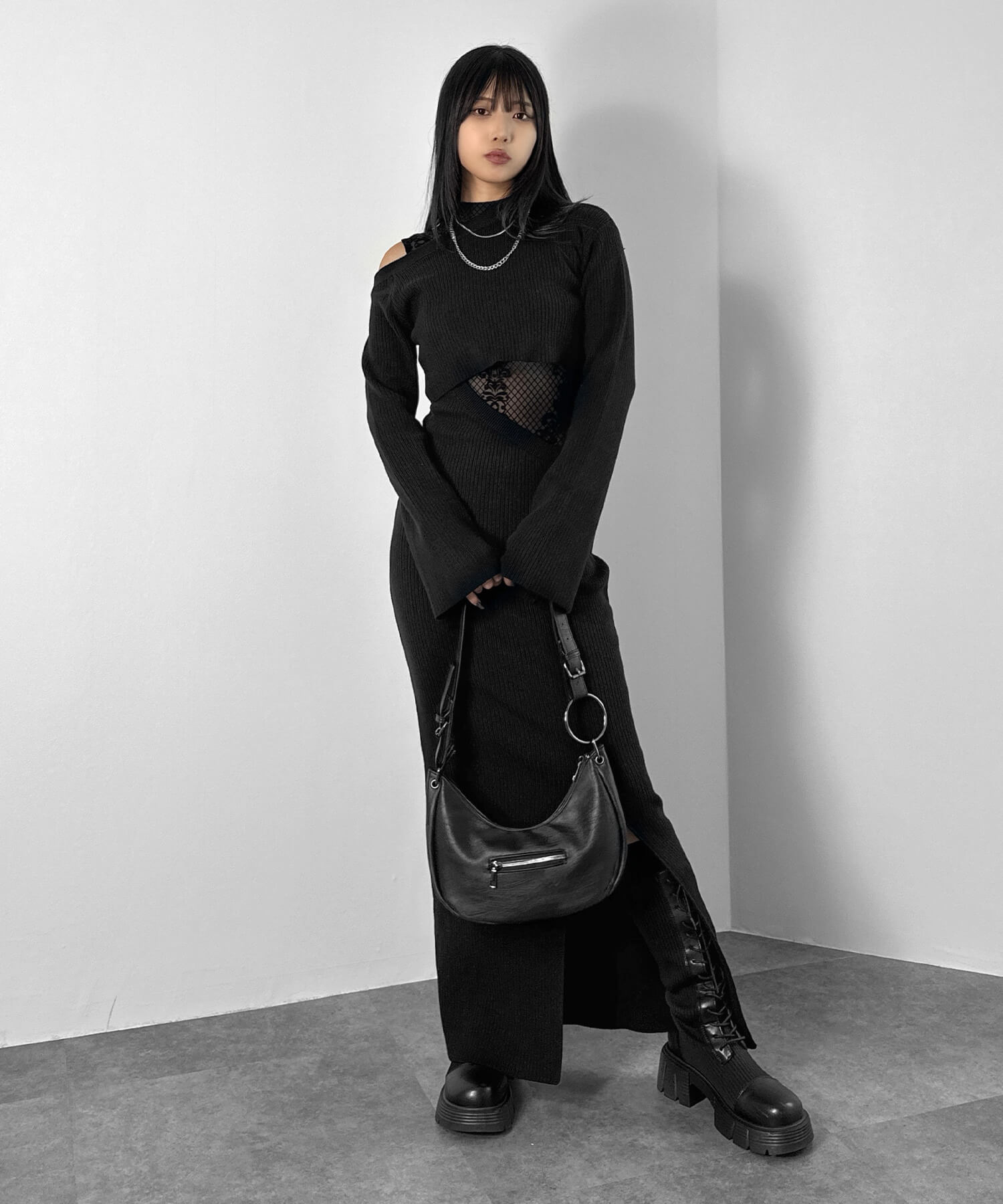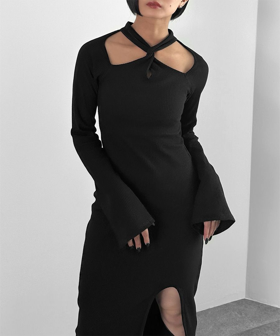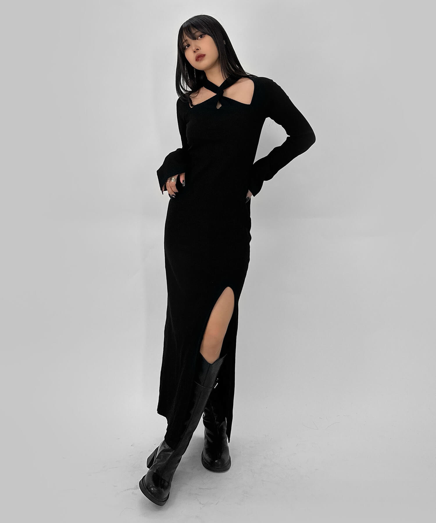 デコルテのカットアウト&クロスデザインでヘルシーな肌見せが叶う