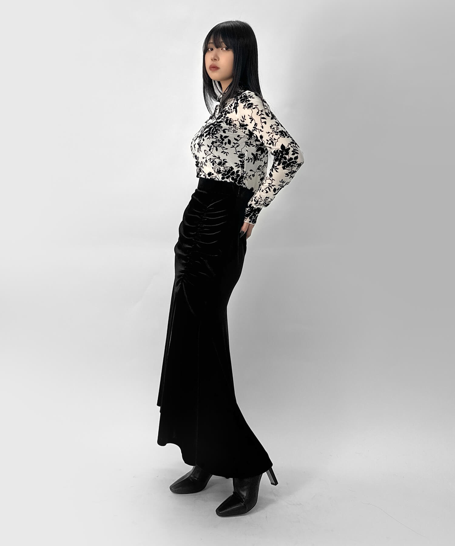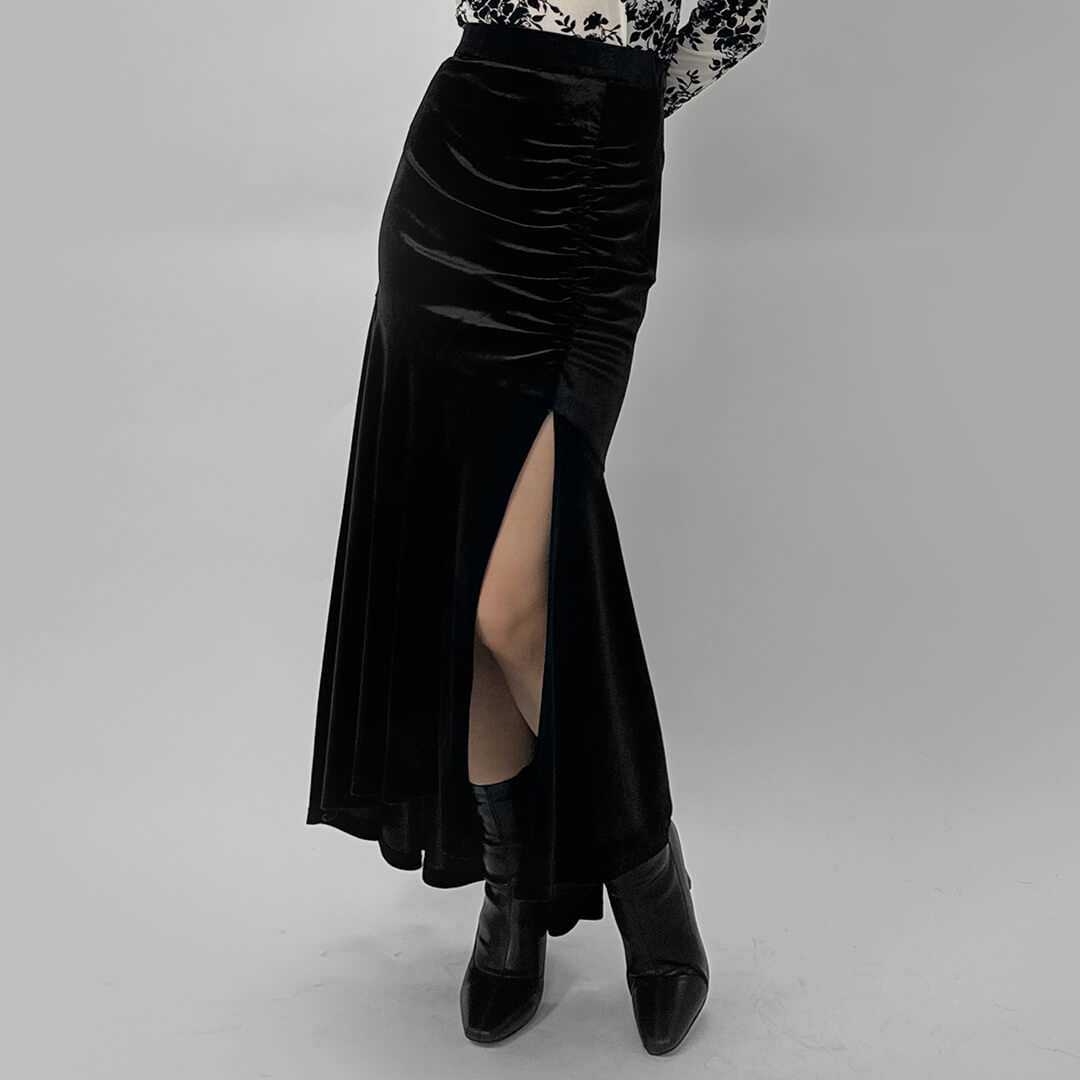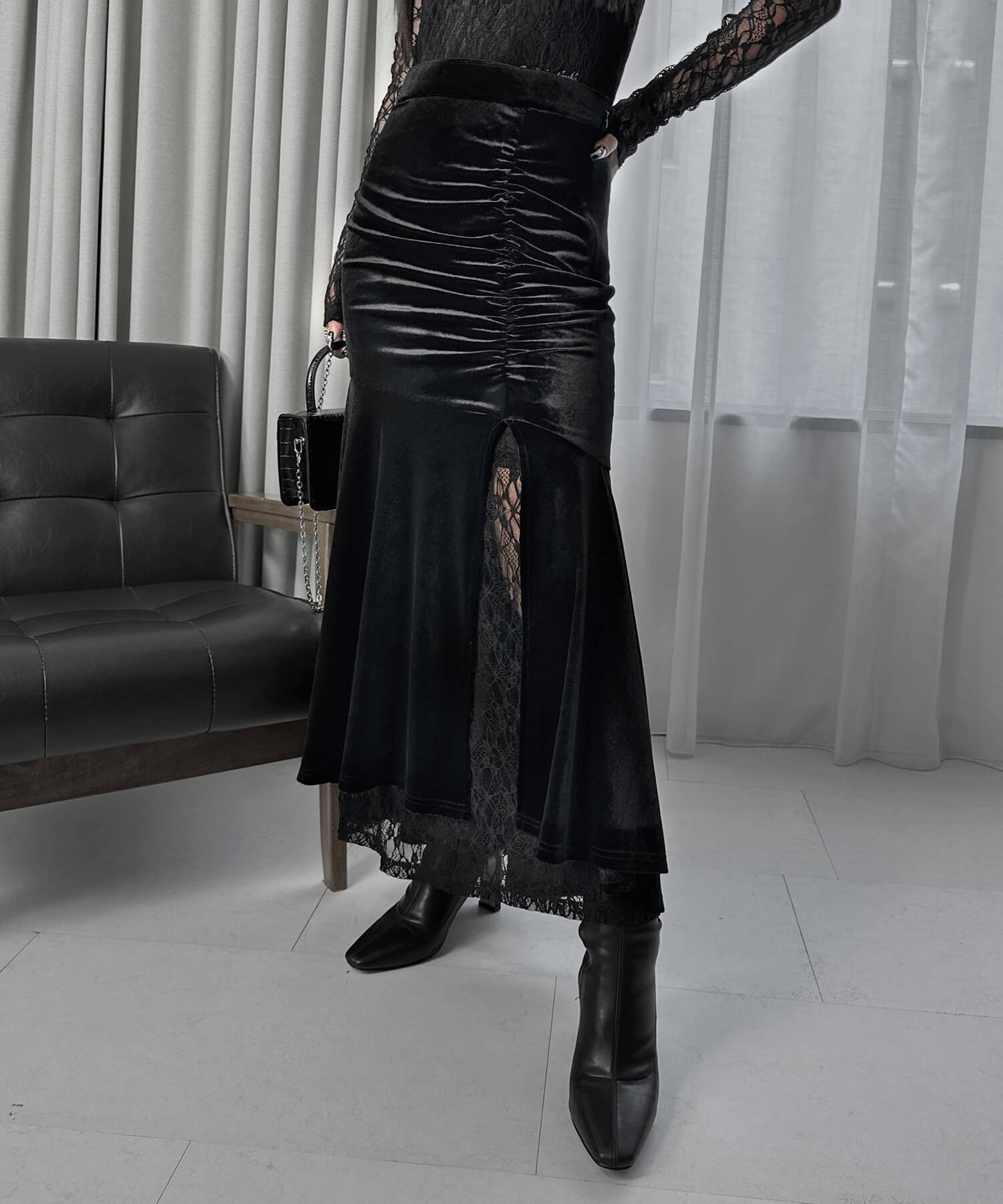 光沢のある上品なベロア素材を使用したマーメイドスカート。