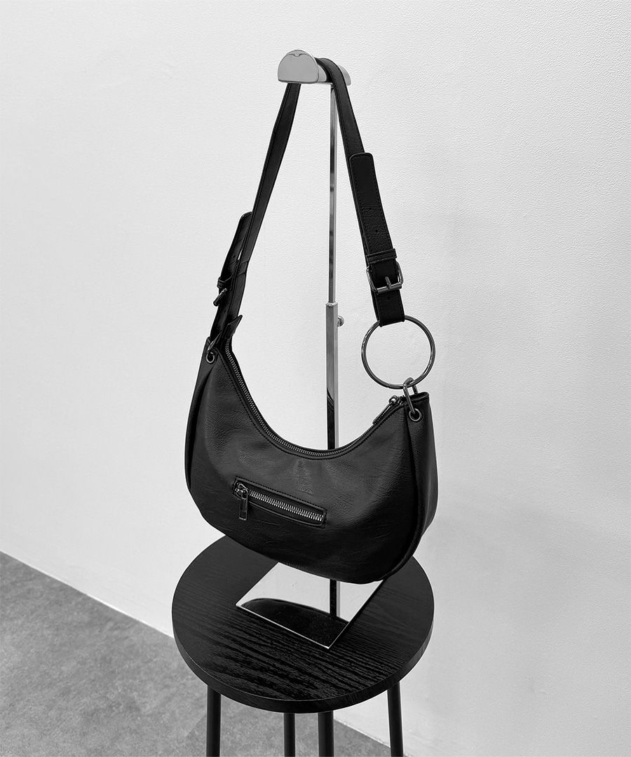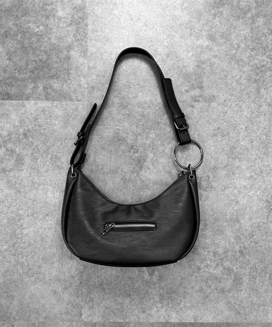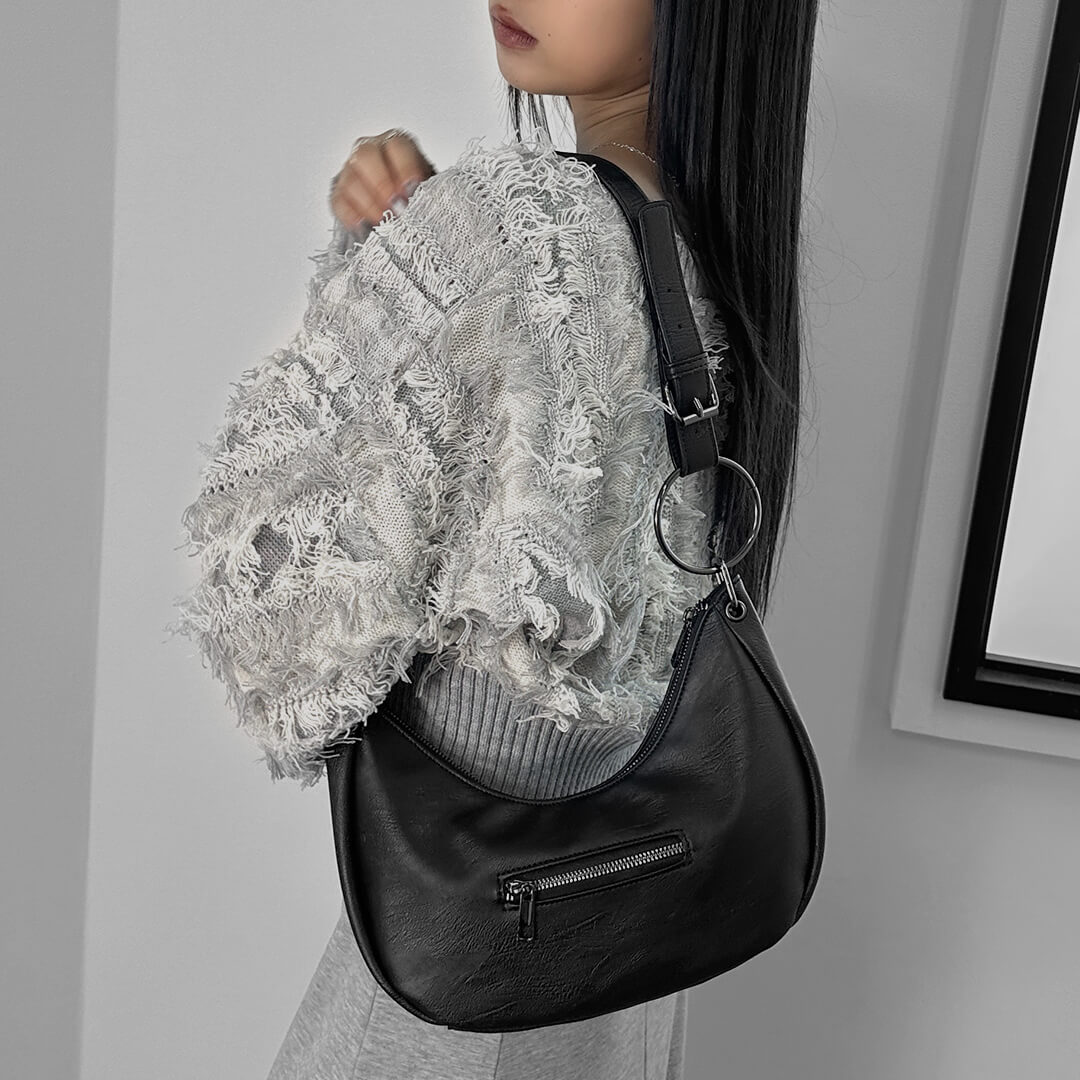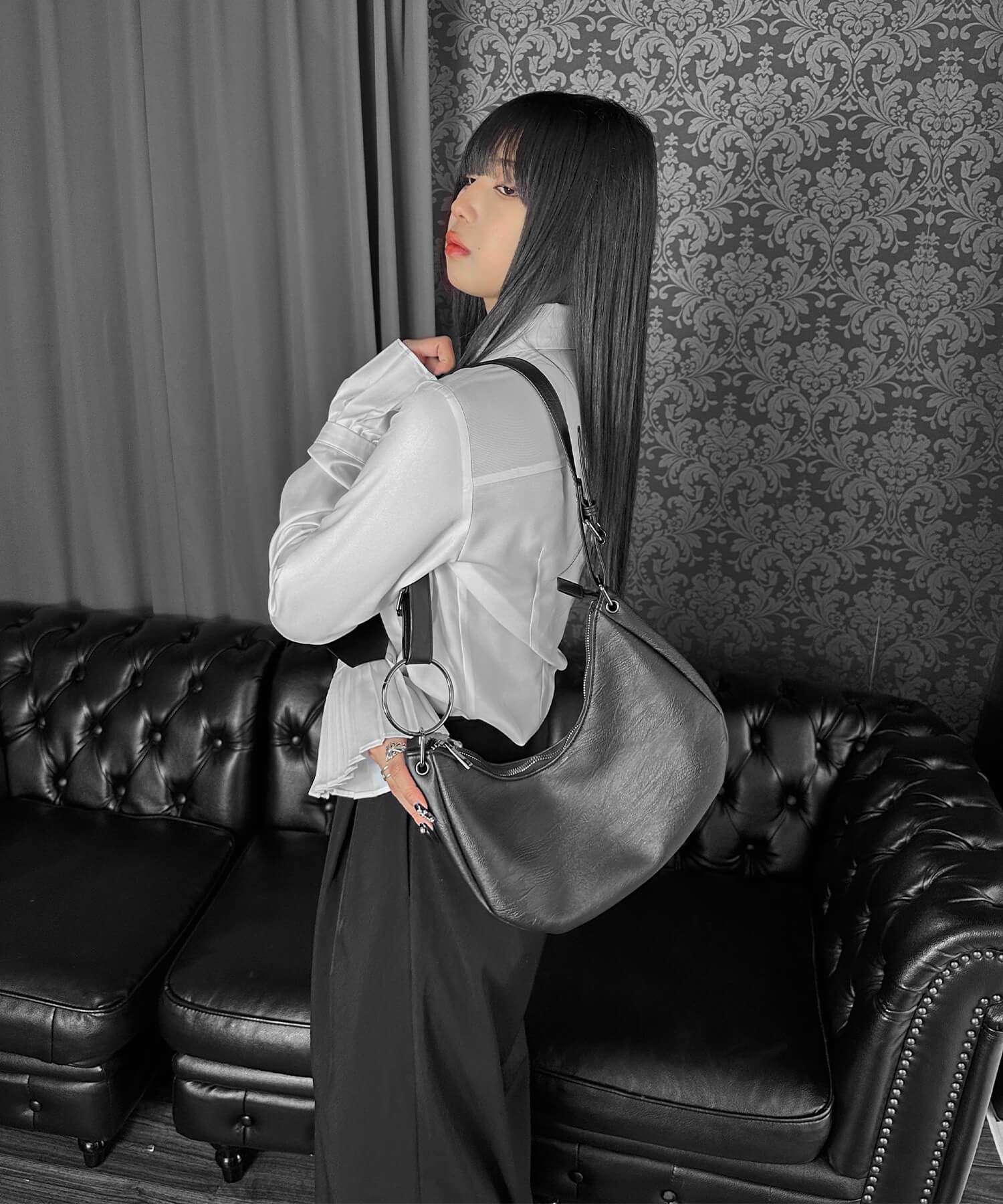 ビッグサイズのリングがポイントになったこなれ感のあるハンドバッグ。