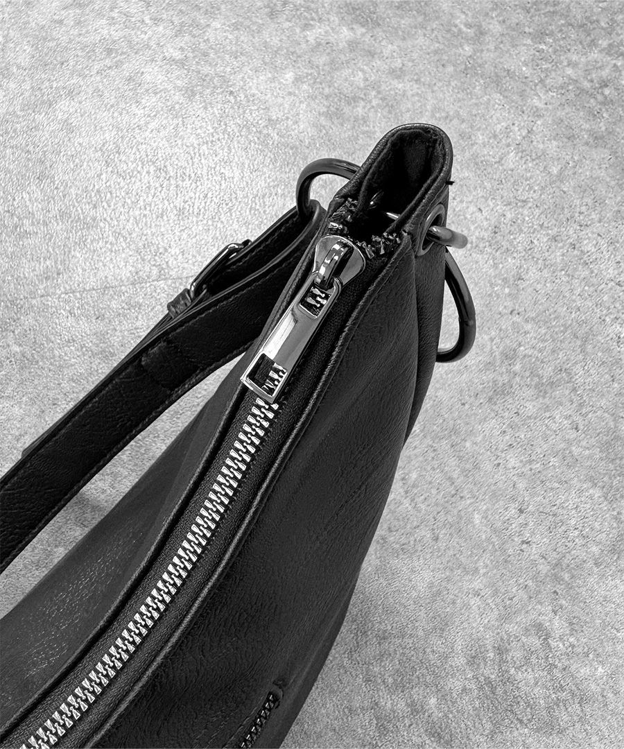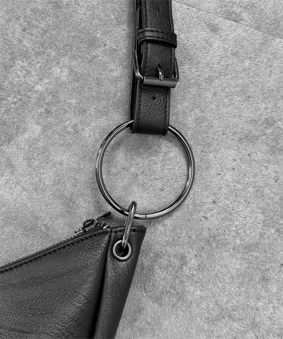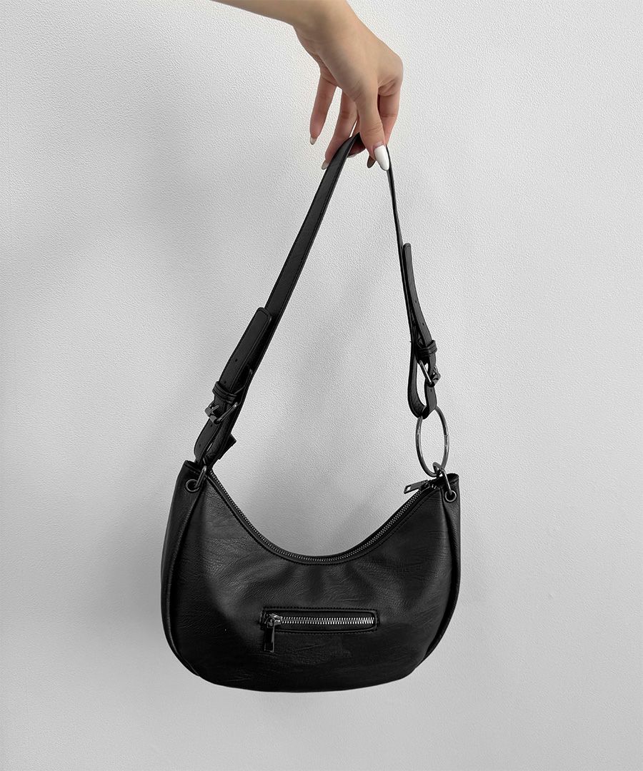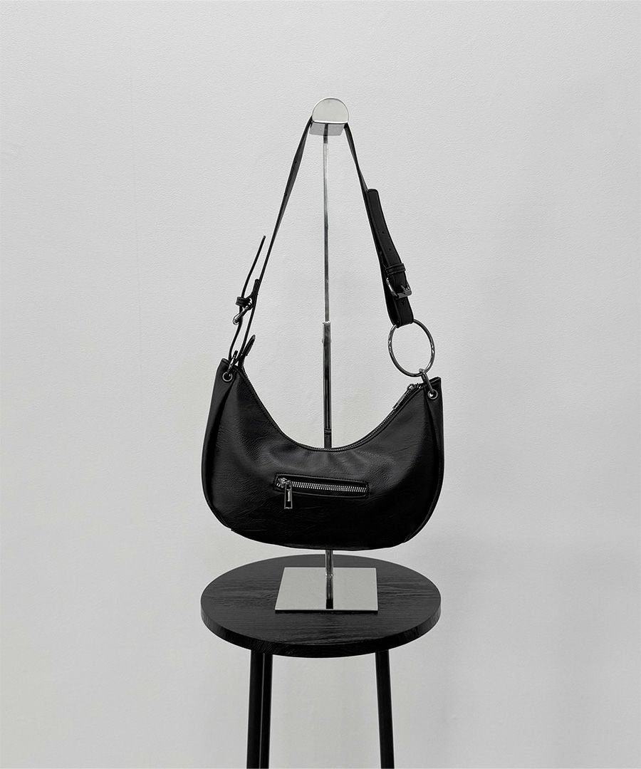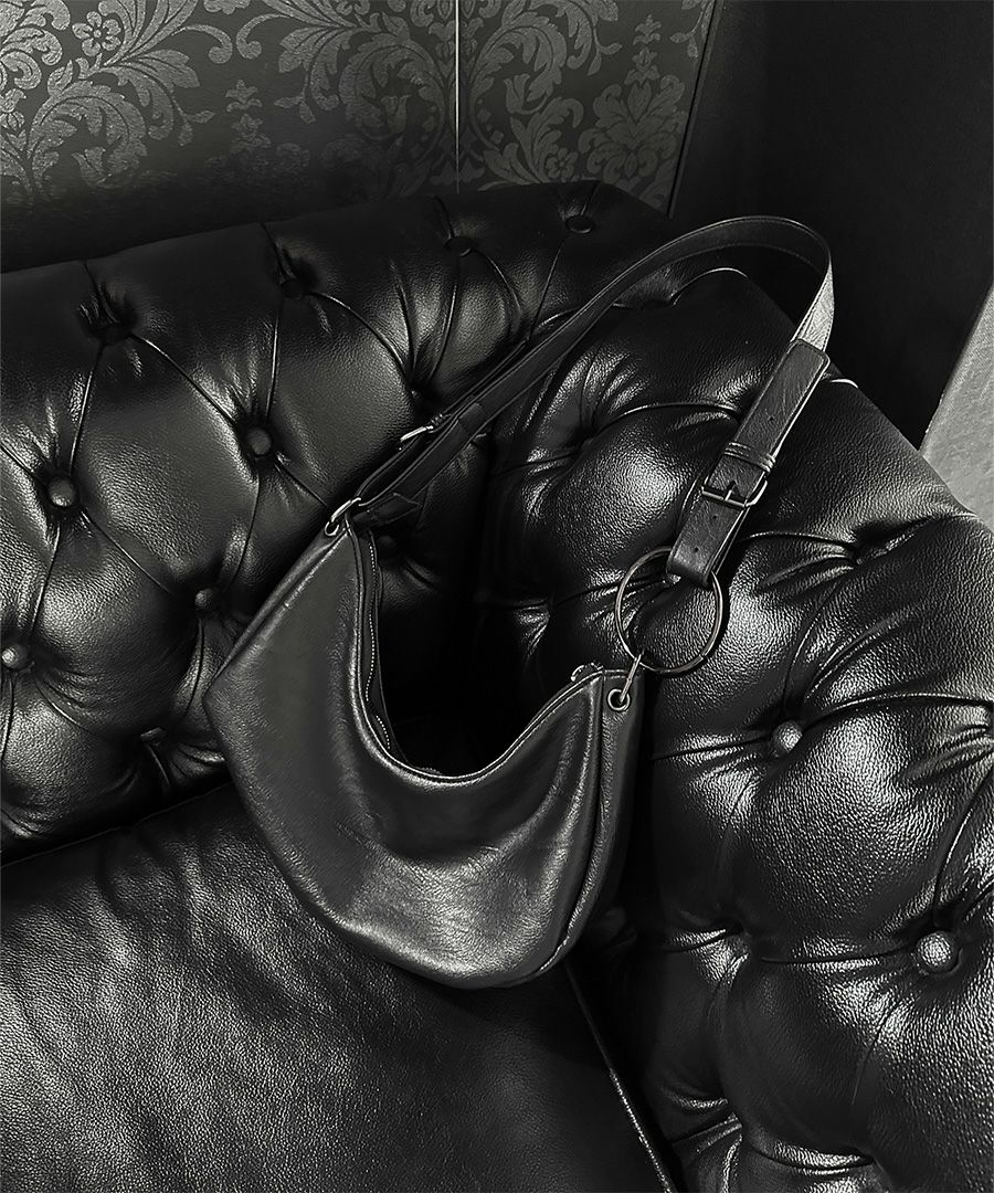 ビッグサイズのリングがポイントになったこなれ感のあるハンドバッグ。