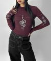 ストレッチのきいたメッシュ素材でレディライクな印象をプラス。