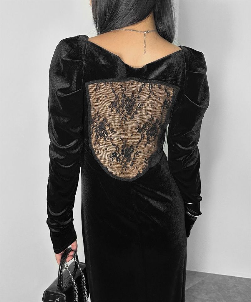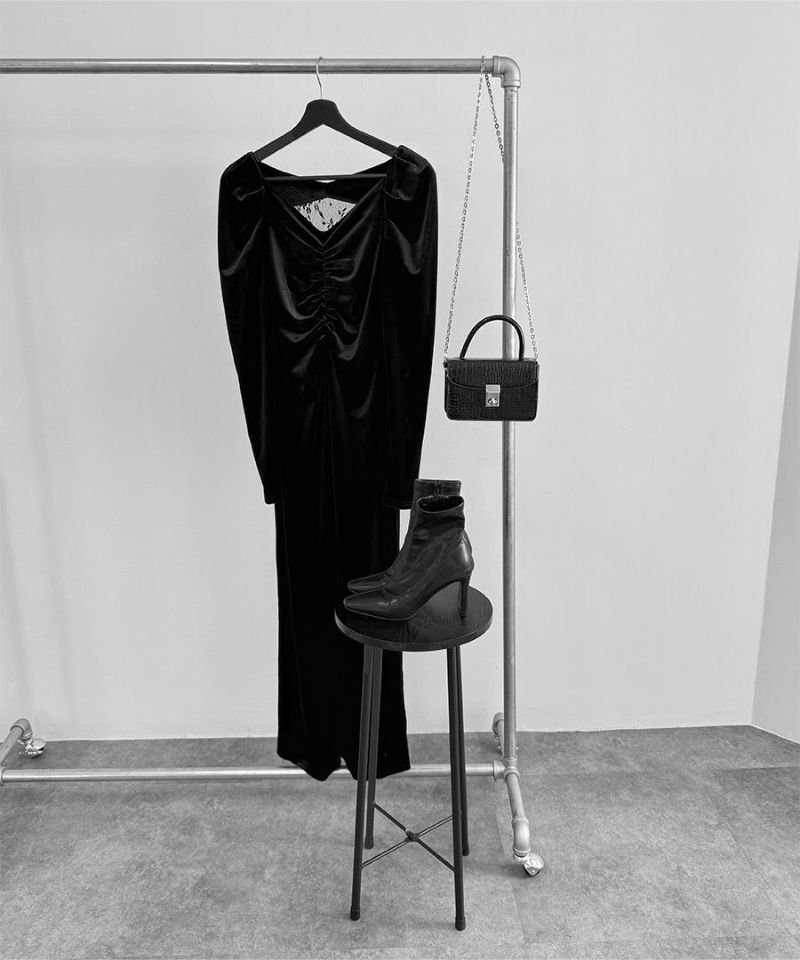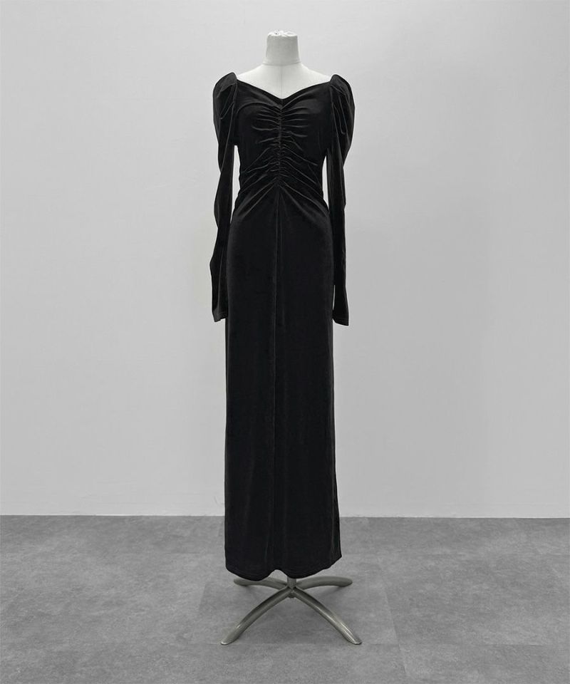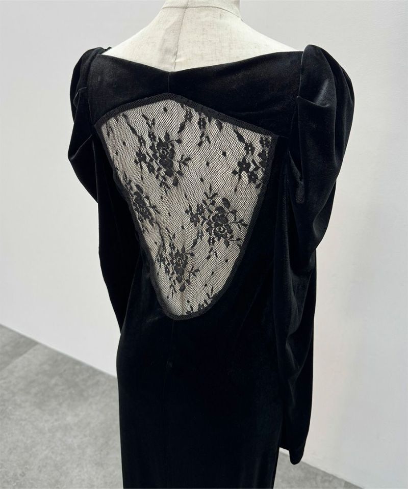 ゴシックモードな雰囲気漂うワンピース。 上品なシルエットにトレンドを落とし込んだ1枚です。 胸元のギャザーと肩のパフスリーブが ドレッシーなスタイルを演出。 大胆なバックレースデザインで 360度どこからでも美しく魅せてくれます。