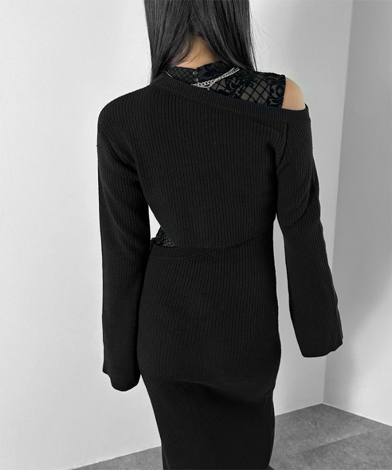 ユニークなレイヤード風デザインで 1枚で着てもサマになるワンピース。 深めのフロントスリットは歩きやすさもありながら 抜け感をプラスしてくれます。 長めの丈感のフレアスリーブで女性らしさをアップ。 スカート部分にはファスナーがついているので 着脱しやすいのも嬉しいポイントです。