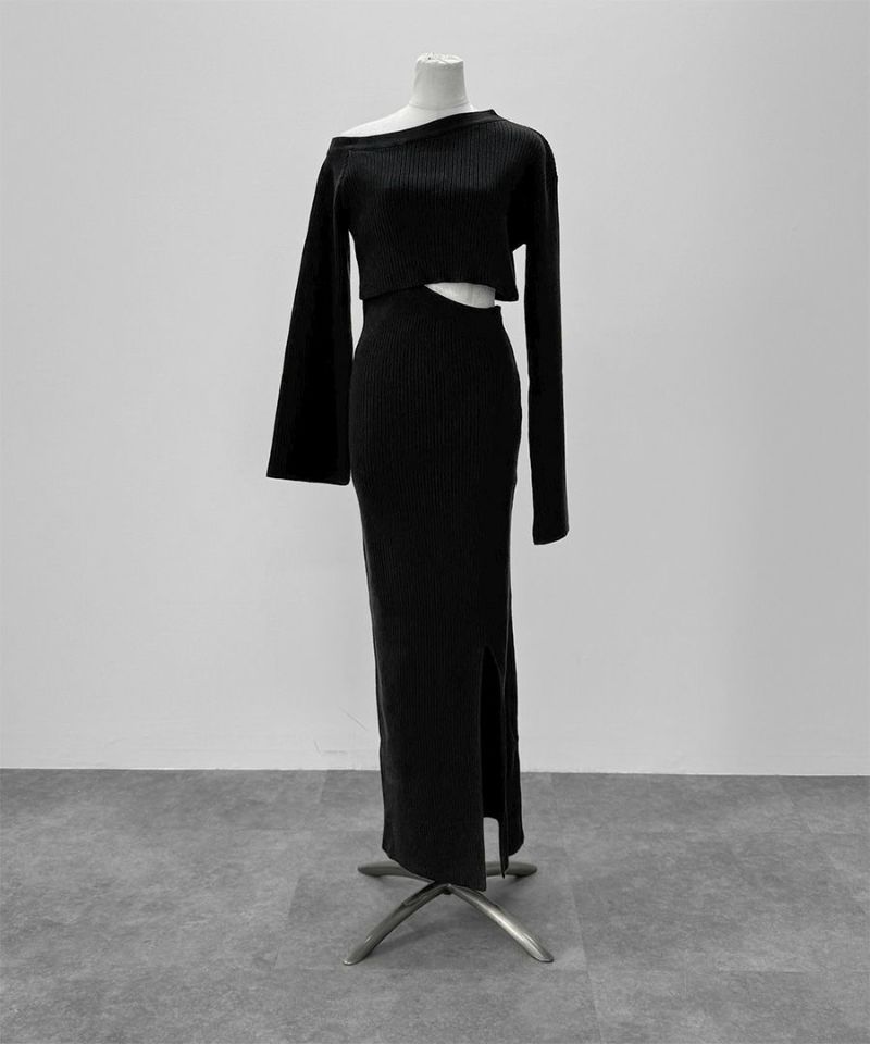ほど良い厚みのリブニット生地なので キレイめシルエットでありながら ストレスフリーな着心地です。 リブが縦ラインを強調し 華奢なシルエットを演出してくれます。