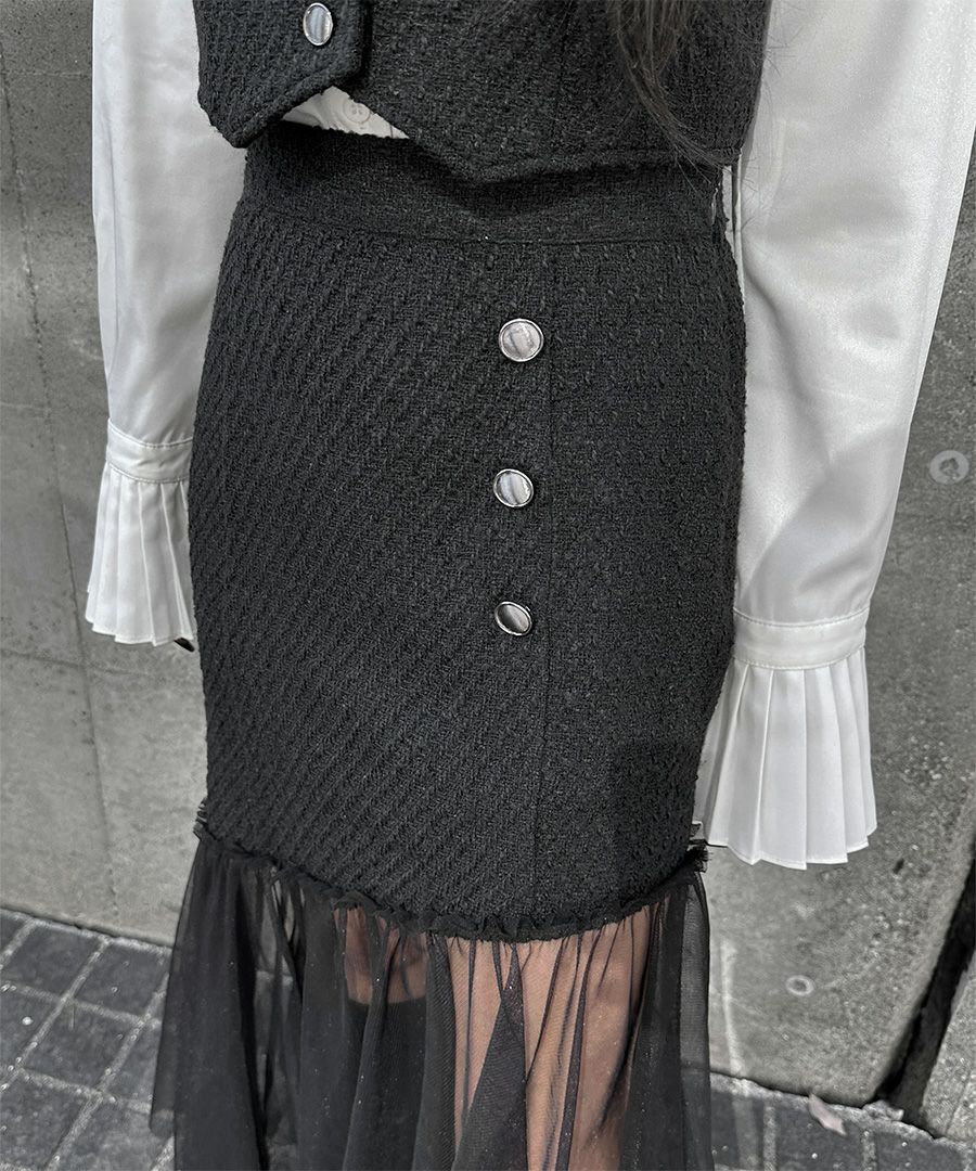 他の画像を見る 【SALE】 Sheer docking tweed skirt SALE ORIGINAL 定価 ¥ 7,810 → ¥ 6,639 税込 販売期間 2025/11/21 12:00 〜 2025/12/03 11:59 カートに入れる お気に入りに登録する