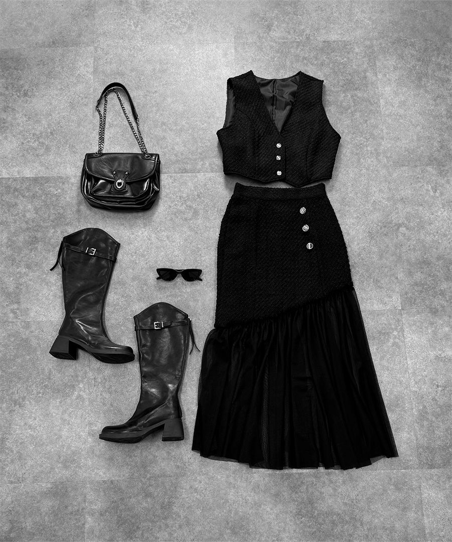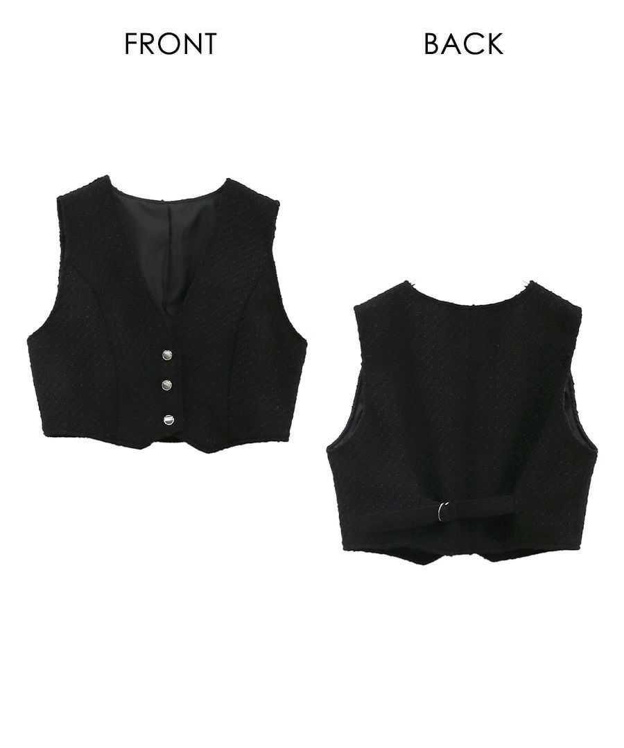 他の画像を見る 【SALE】 Tweed cropped vest SALE ORIGINAL HITITEM 定価 ¥ 5,500 → ¥ 5,115 税込 販売期間 2025/11/21 12:00 〜 2025/12/03 11:59 カートに入れる お気に入りに登録する