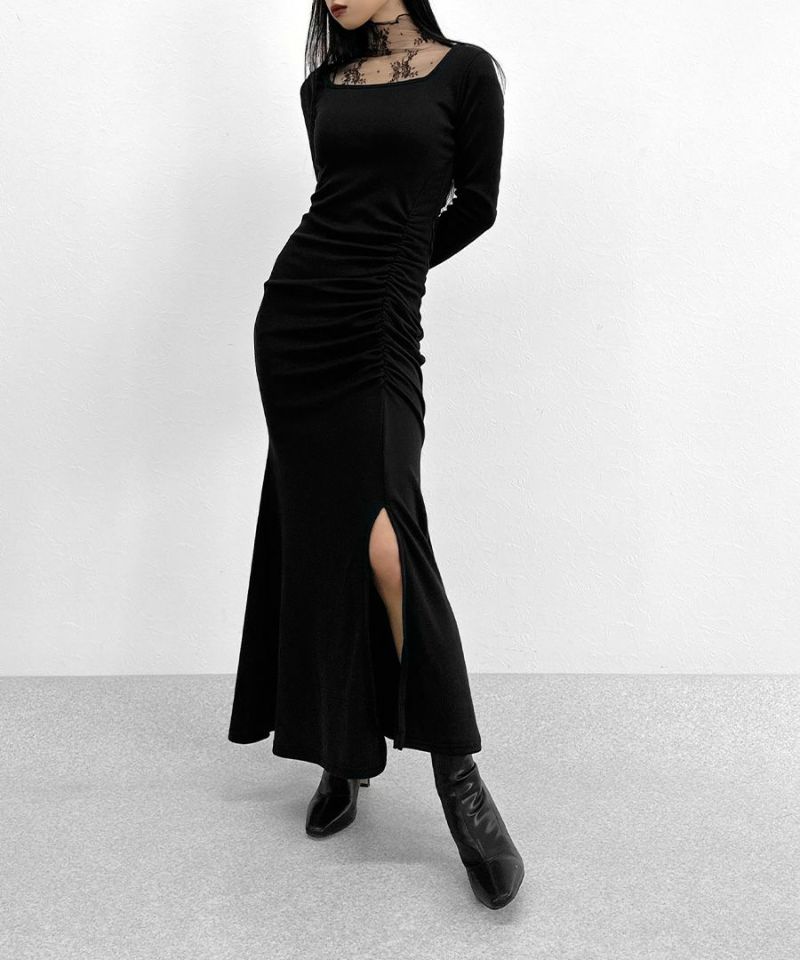 サイドギャザーマーメイドワンピース