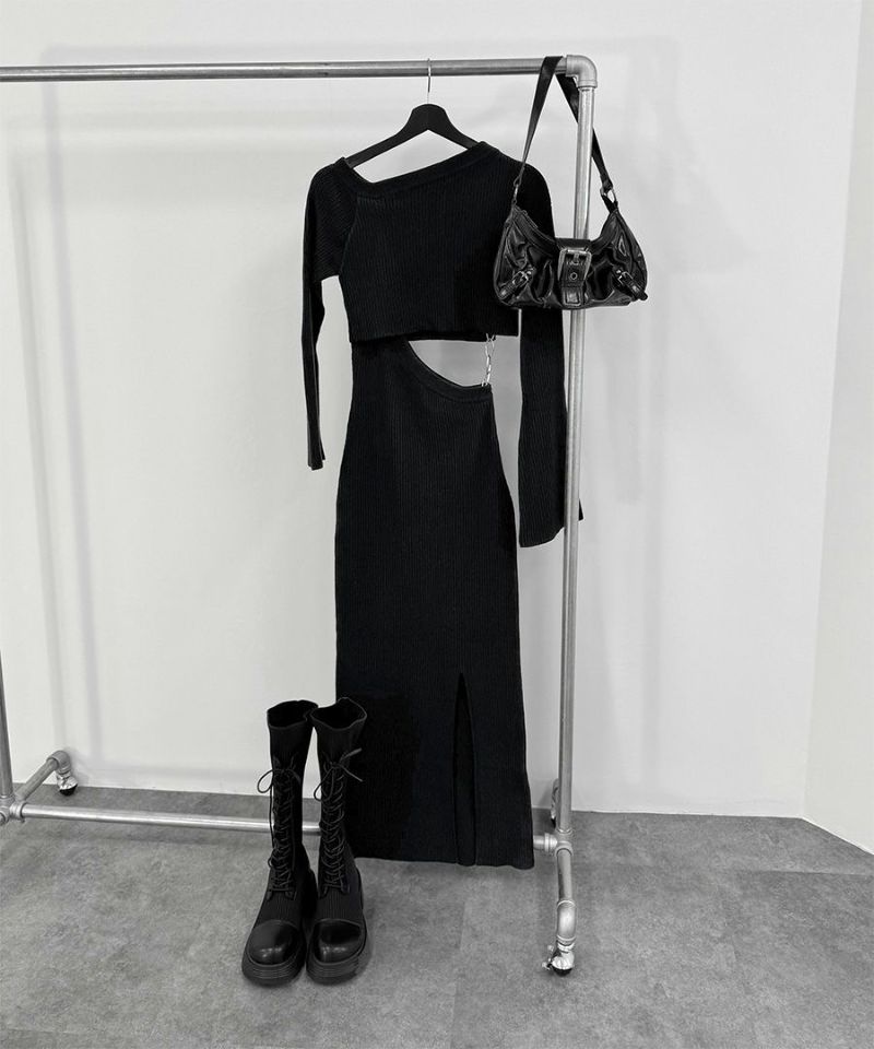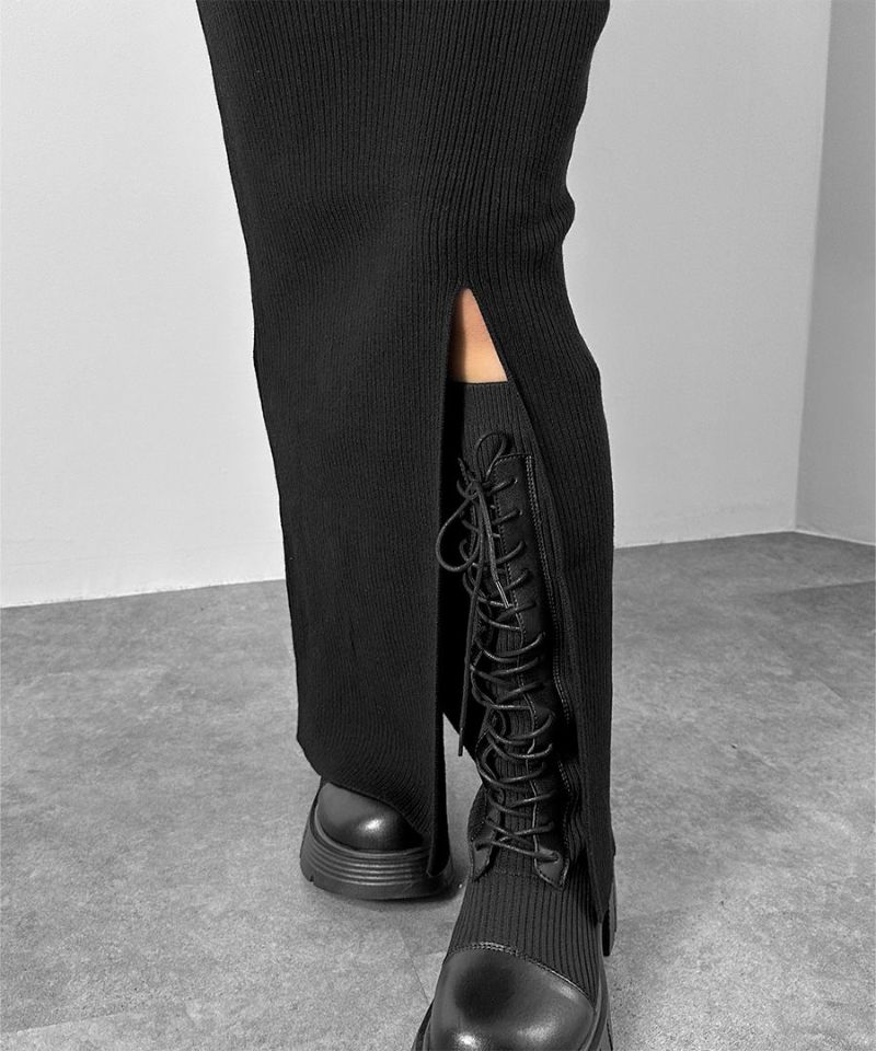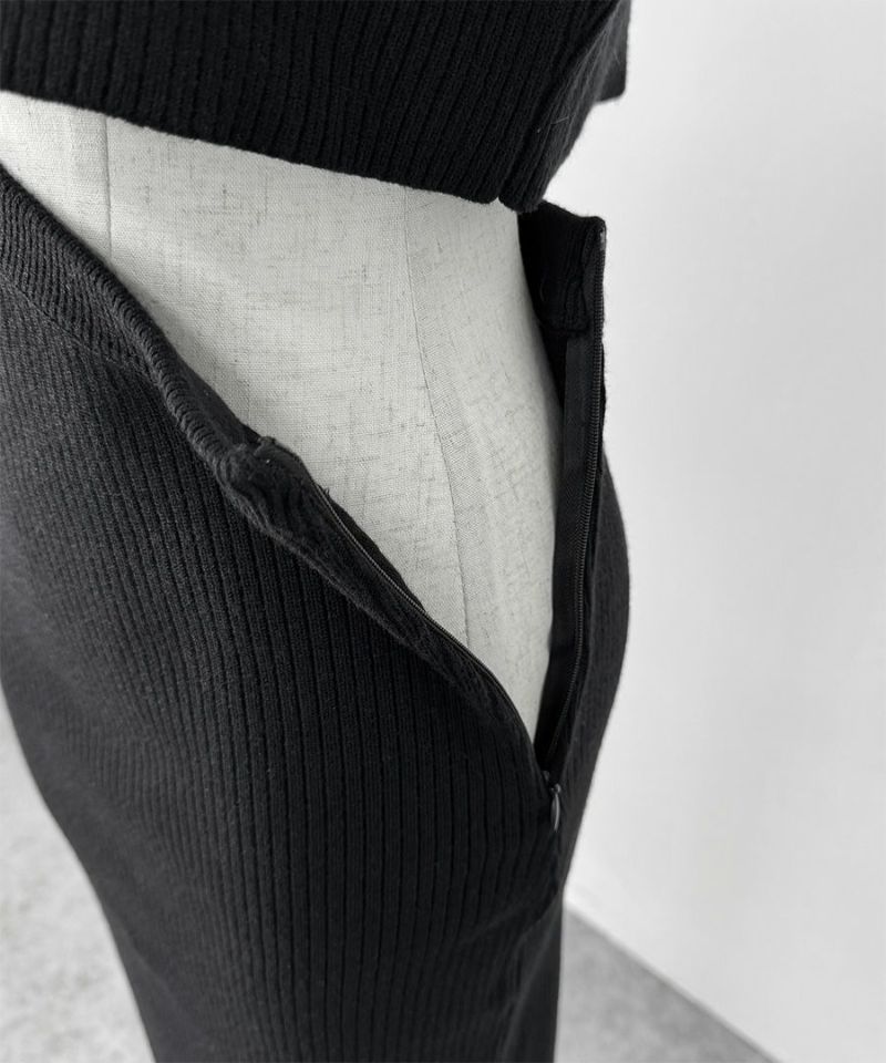 ほど良い厚みのリブニット生地なので キレイめシルエットでありながら ストレスフリーな着心地です。 リブが縦ラインを強調し 華奢なシルエットを演出してくれます。