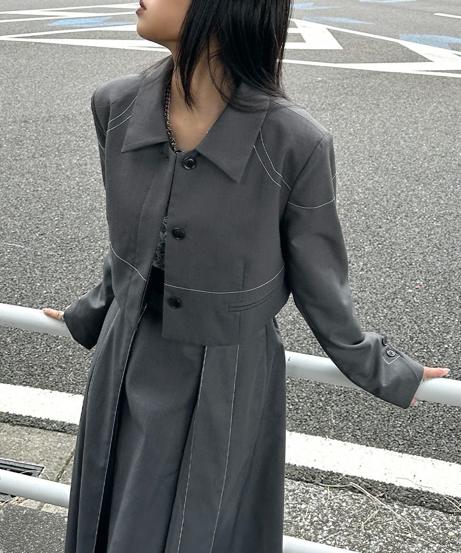 他の画像を見る 【50%OFF】 Stitched design cropped jacket ORIGINAL CLEARANCE SALE 定価 ¥ 7,920 → ¥ 3,900 税込 販売期間 2024/09/22 20:00 〜 カートに入れる お気に入りに登録する