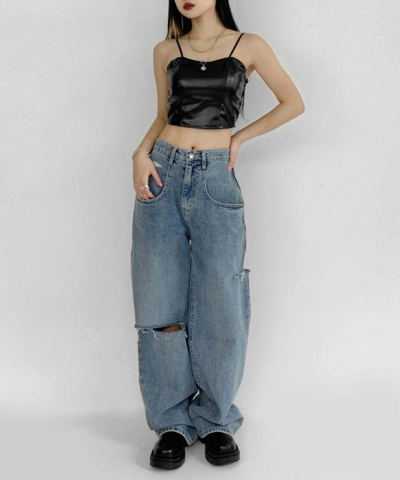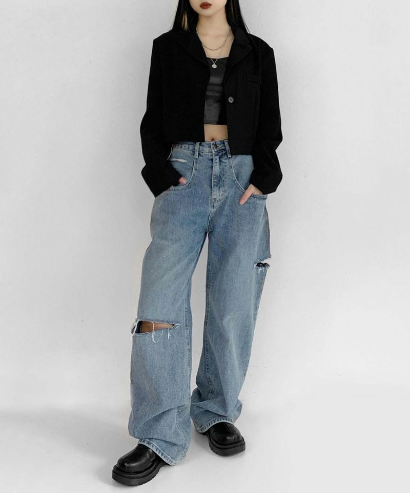 デニムパンツを合わせたクールなコーデもおすすめ◎