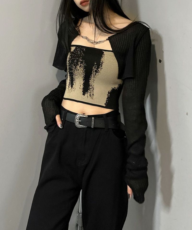モード感のあるニュアンス柄が目を引くニットビスチェ。 しっかりとした素材感のジャカードニットを使用。 身体にフィットする付け心地でずれ落ちる心配もありません。