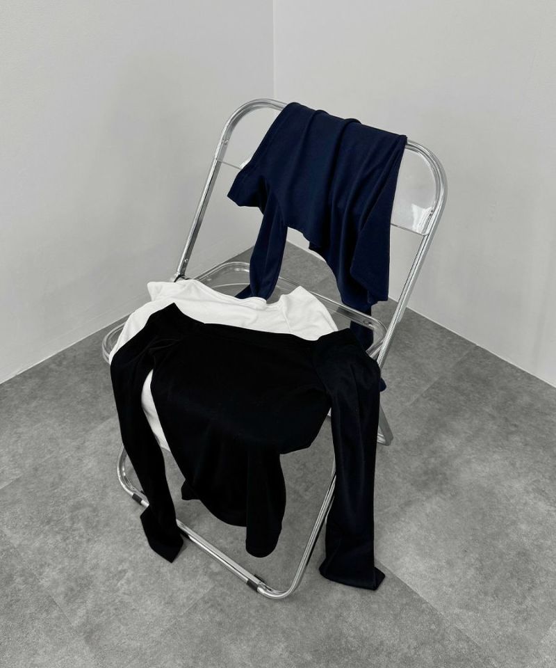 伸縮性に優れたカットソー生地は 体にフィットして女性らしいシルエットを生み出します。 カラーはモード感漂うBLACK、洗練された印象のWHITE こなれたNAVYの3色展開です。